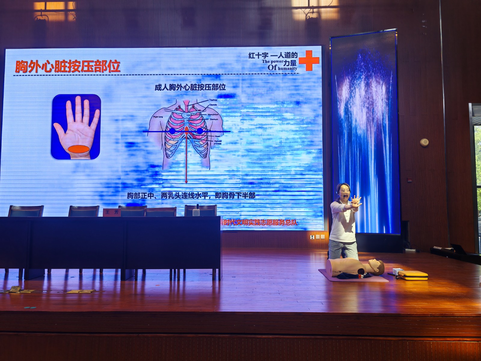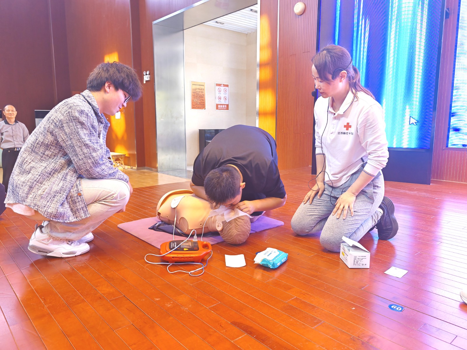 活动期间,红十字救援队的师资走进校园,为学生们带来了生动有趣的急救知识讲座。讲座内容涵盖了心肺复苏、AED的正确使用、气道异物梗阻等相关知识和防范应对技能。在讲座中,通过模拟演练和学生互动体验,使学生在轻松愉快的氛围中掌握了急救技能。