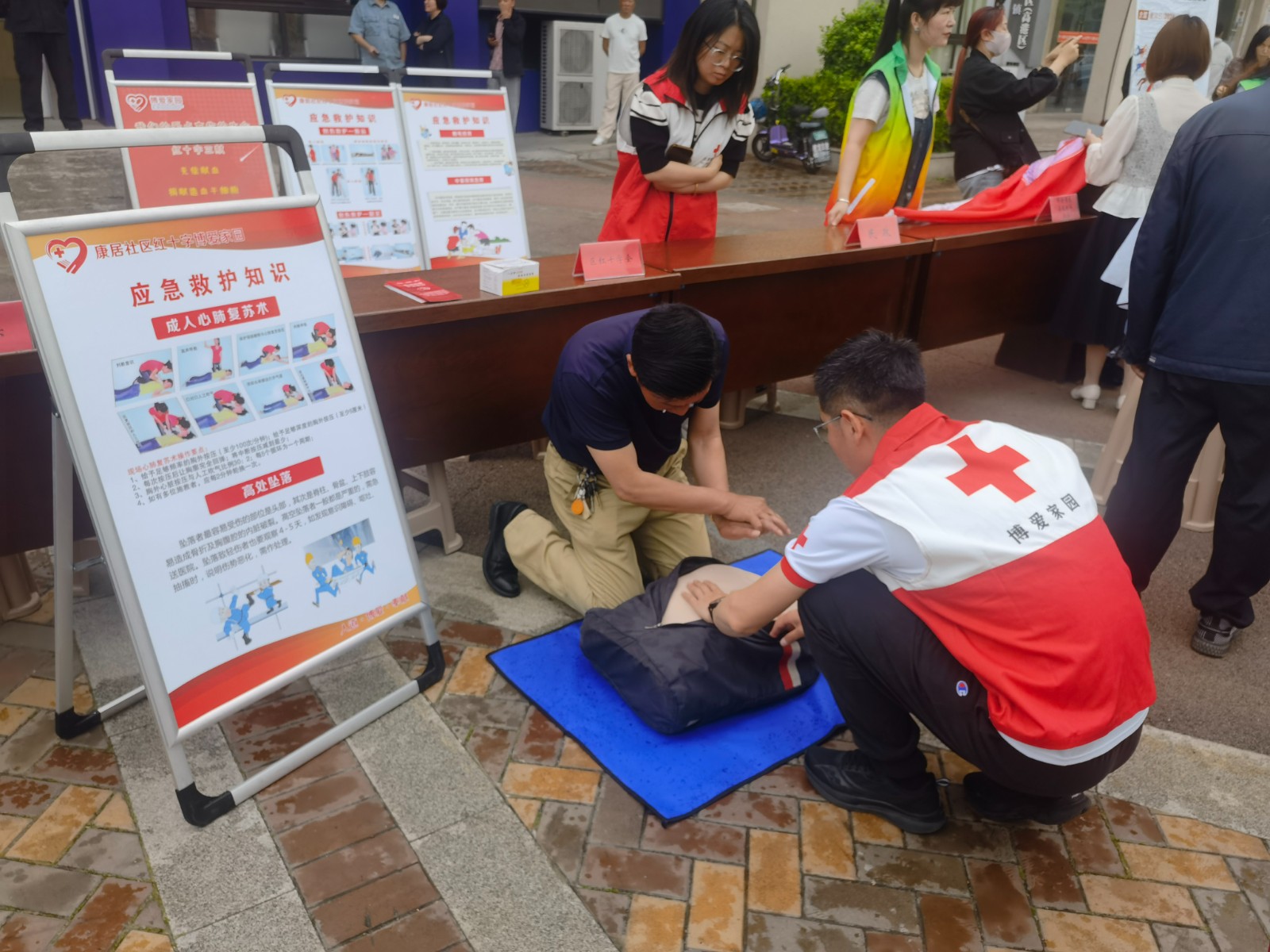 为进一步提高社区居民防范和处理突发事件的能力,提高应急救护知识技能普及率,5月17日,高港区红十字会联合康居社区博爱家园在社区广场开展应急救护宣传活动。
