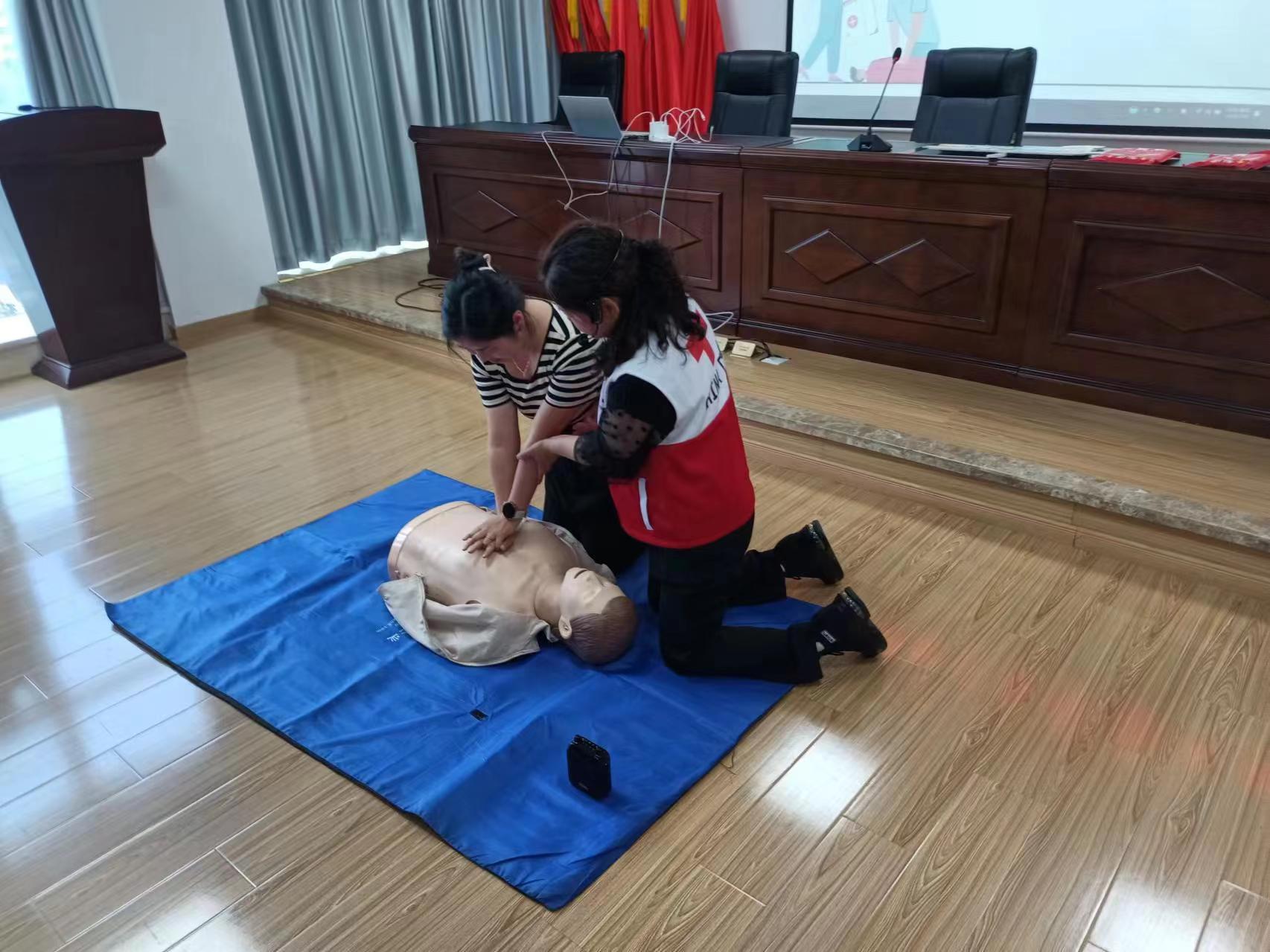 培训中,黄君君向大家讲解了高温季节里中暑、触电、烧烫伤等多发意外伤害事件的预防和正确处理措施,重点讲授心肺复苏术、海姆立克急救法等应急救护技能。