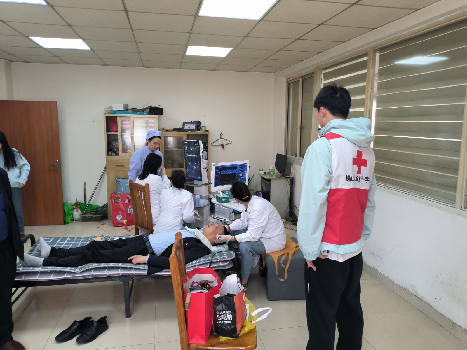 本次活动除了常规的量血压测血糖以外还设置了颈动脉超声检查,他是检查、评估、诊断颈部血管的一种常见且方便的检查方式。使用超声检查,可帮助医生检测颈部动脉管壁情况、动脉内血液流动是否通畅等。是判断有无颈部动脉硬化、血栓形成的主要检查方式。