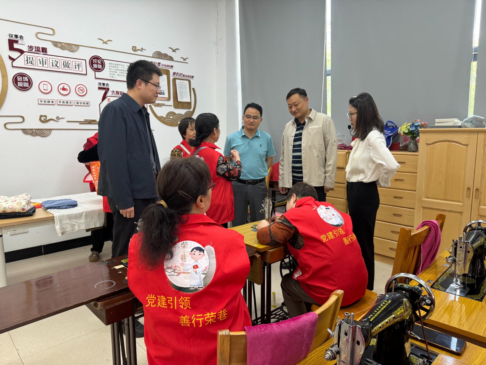5月15日,调研组一行首先来到荣巷社区博爱家园,荣巷社区博爱家园建于2020年,现有志愿服务队6支,内设博爱图书室、书画阅览室、文体活动室、日间照料中心、博爱家园卫生服务站、应急避险场所等,建立“博爱生计基金”帮助贫困创业者发展生计,平时开展困难群众帮扶救助,组织居民志愿互助;在节假日组织亲子家庭开展青少年绘画、手工文创制作等活动,通过精准治理,居民生活条件得到改善,防灾减灾意识得到增强。调研组对荣巷社区博爱家园在开展人道救助、救护培训、便民服务等方面的创新做法给予了一致好评。