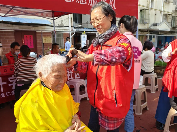 “博爱家园”是中国红十字会在城乡社区开展的以“推动社区治理、提升社区能力、促进社区发展”为目标,以“防灾减灾、健康促进、生计发展、人道传播”为主要内容的人道公益项目。为进一步弘扬中华优秀传统文化,营造敬老、爱老、孝老的浓厚氛围,加强社区居民自救互救能力。5月18日, 鹿鸣社区联合市红会“仁爱之子”志愿服务队在北港花园开展敬老、助老、爱老志愿服务活动,关爱社区老年群体,为老年人提供免费健康咨询、理发、按摩等服务。活动现场,医疗专业志愿者为居民讲解牙科基础知识,进行口腔健康咨询和口腔检查;4名理发志愿者细心为居民们免费理发,短短2小时,有200多名老人享受了贴心的理发服务;6名按摩志愿者为居民们提供免费按摩服务。专业、细致的服务受到社区居民欢迎。