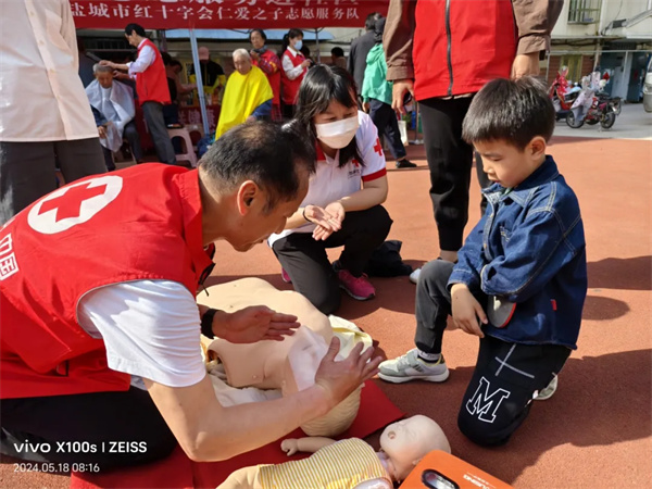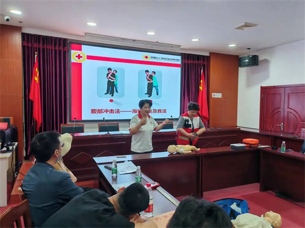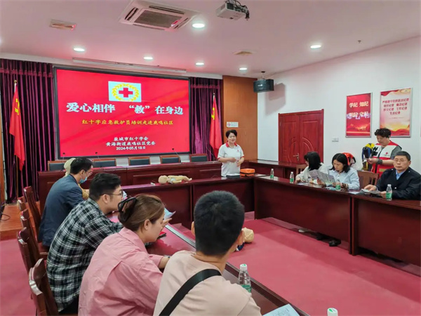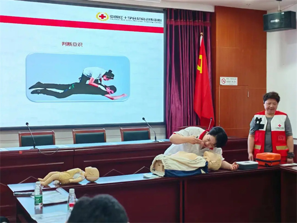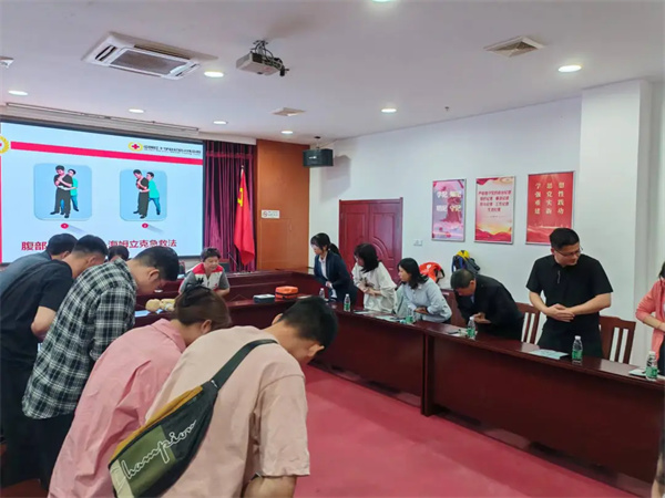同一时间,在鹿鸣社区居委会对30名居民、职工开展CPR+AED培训。邀请市优秀救护师资吴向华讲授课程,从“判断救护环境是否安全、是否有意识呼吸、急救的步骤动作、AED的正确使用、复苏成功后应该做什么”等方面为志愿者进行详细讲解。志愿者们专心听、认真学、争先动手操练后,掌握了CPR+AED的救护技能,并全部顺利通过考核!