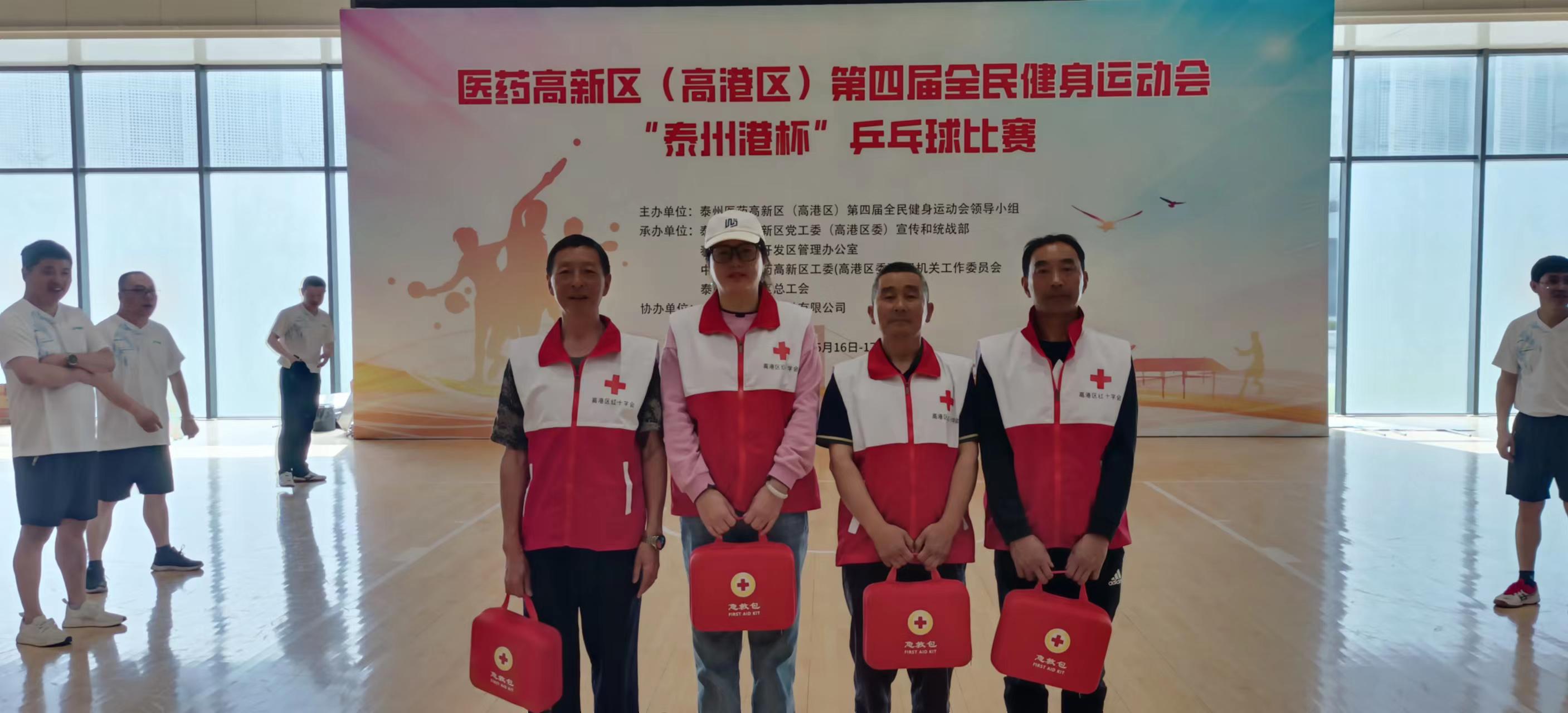 5月16日-17日,泰州医药高新区(高港区)第四届全民健身运动会“泰州港杯”乒乓球比赛在体育文创中心篮球馆举行。应赛事主委会邀请,高港区红十字应急救援队应邀承担本次比赛的赛事急救保障。