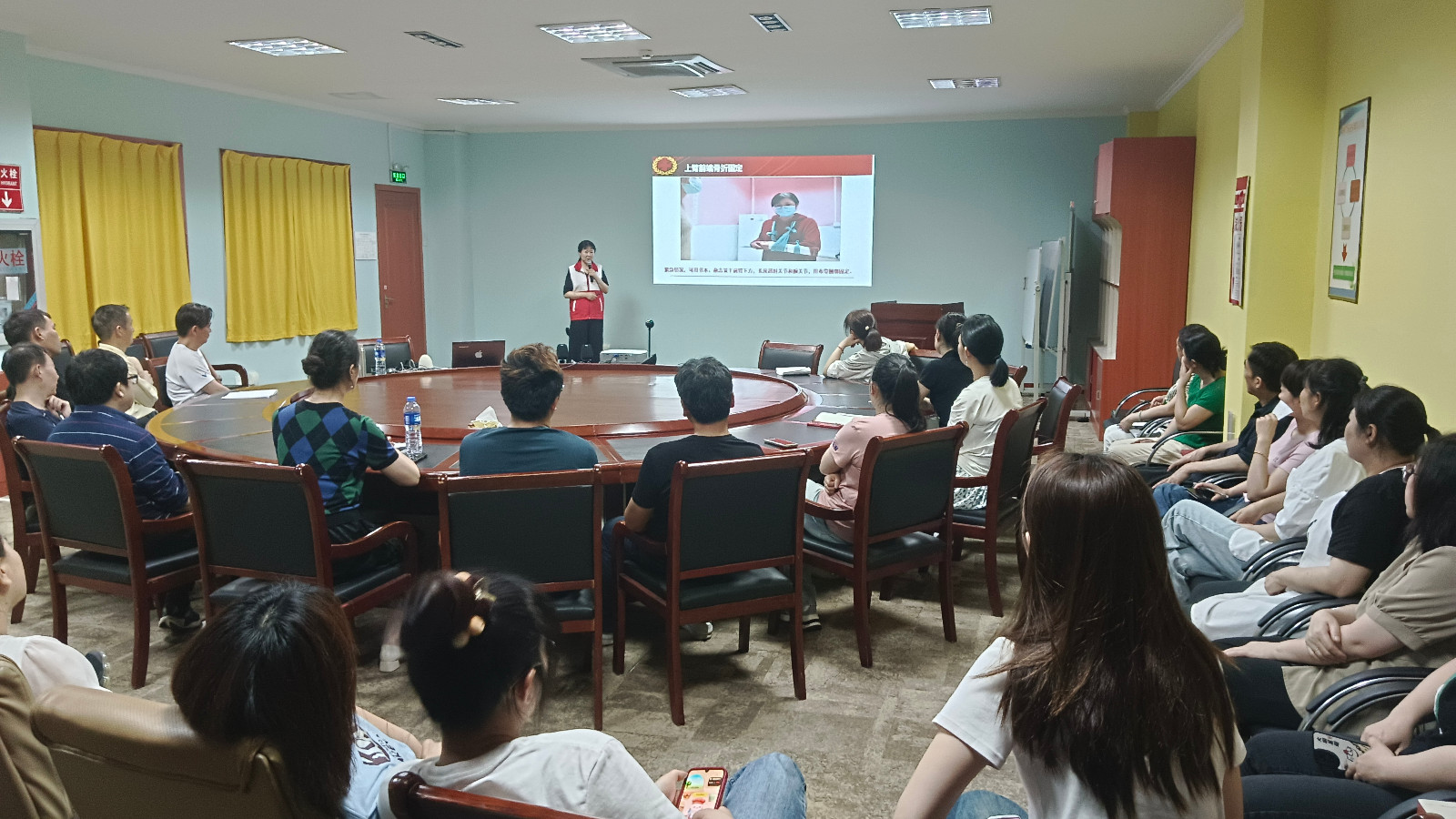 培训中,朱水清向大家陈述了各类意外事件对人体的伤害,严重的在短时间内就会夺去人的生命。她介绍了生活和工作中多发、易发的流鼻血、触电、烫伤、癫痫等急症的正确应对处理方法,并针对气道梗阻、心脏呼吸骤停的急性症状,详细讲解了海姆立克急救法和心肺复苏术、体外除颤仪的使用等现场应急抢救技能。
