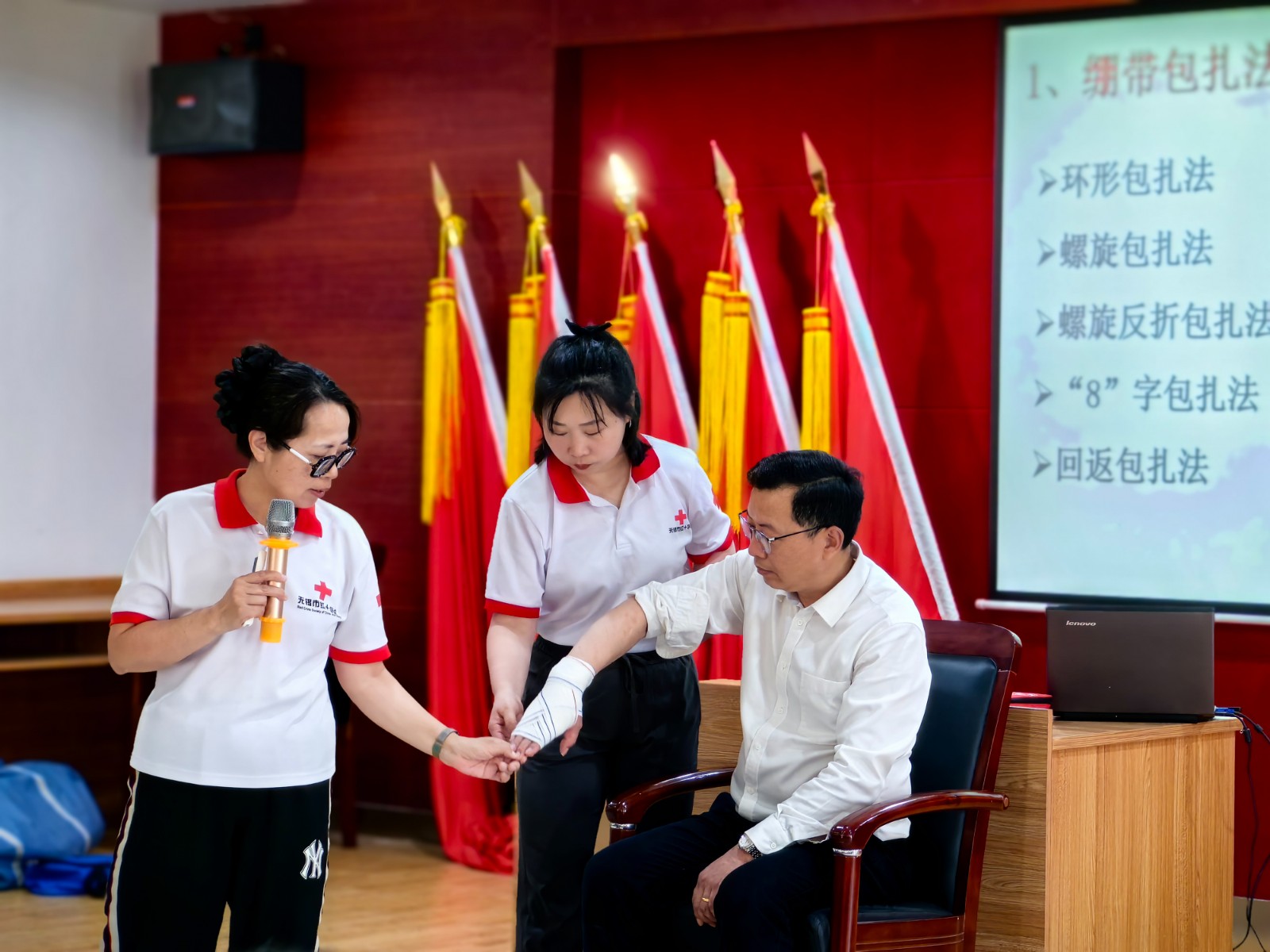 培训伊始,红十字师资蒋老师采用通俗易懂的教学语言和幽默风趣的教学风格,深入浅出地讲解了应急救护原则、创伤的基本生命支持、气道梗塞急救法以及心肺复苏等初级急救知识。同时,通过穿插典型案例,让学员们更加直观地了解急救知识在实际中的应用,从而提高了学员们的学习兴趣和积极性。
