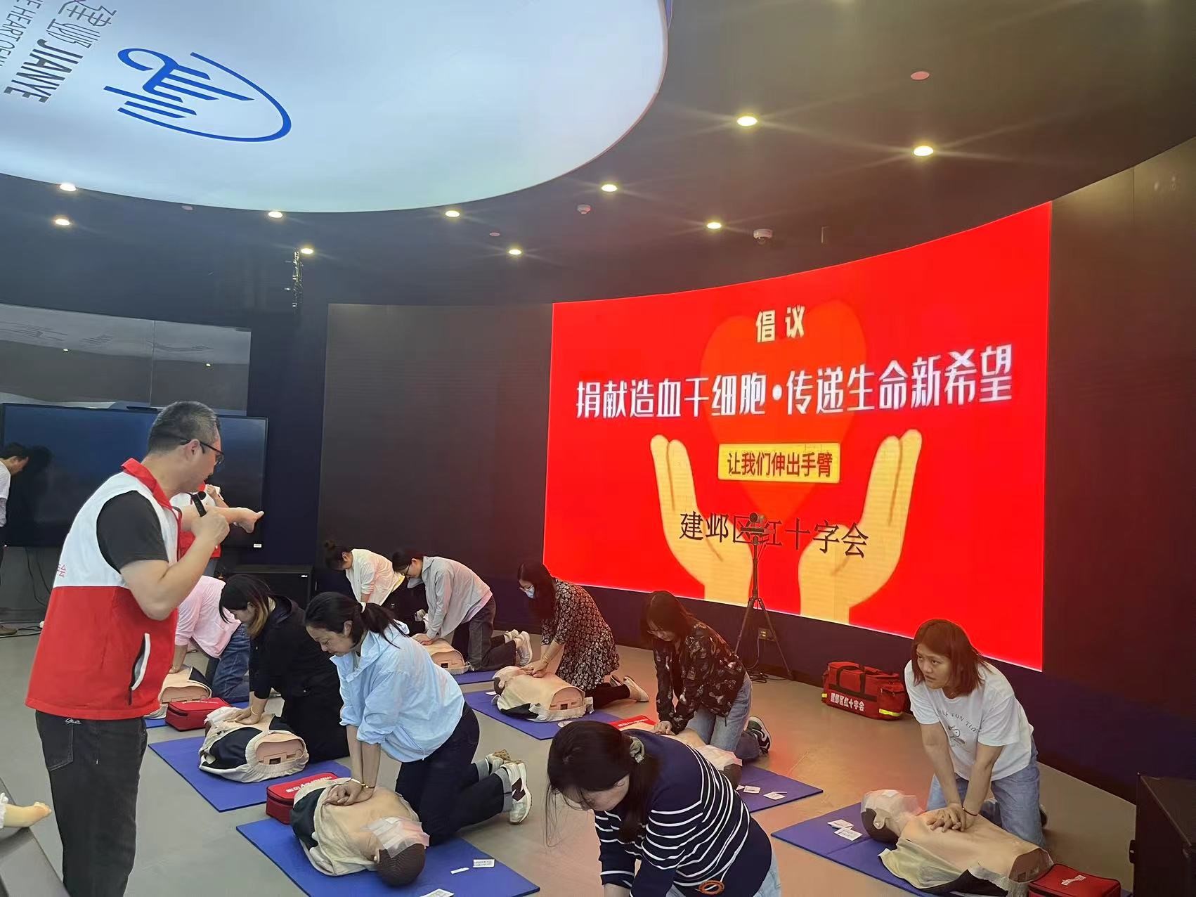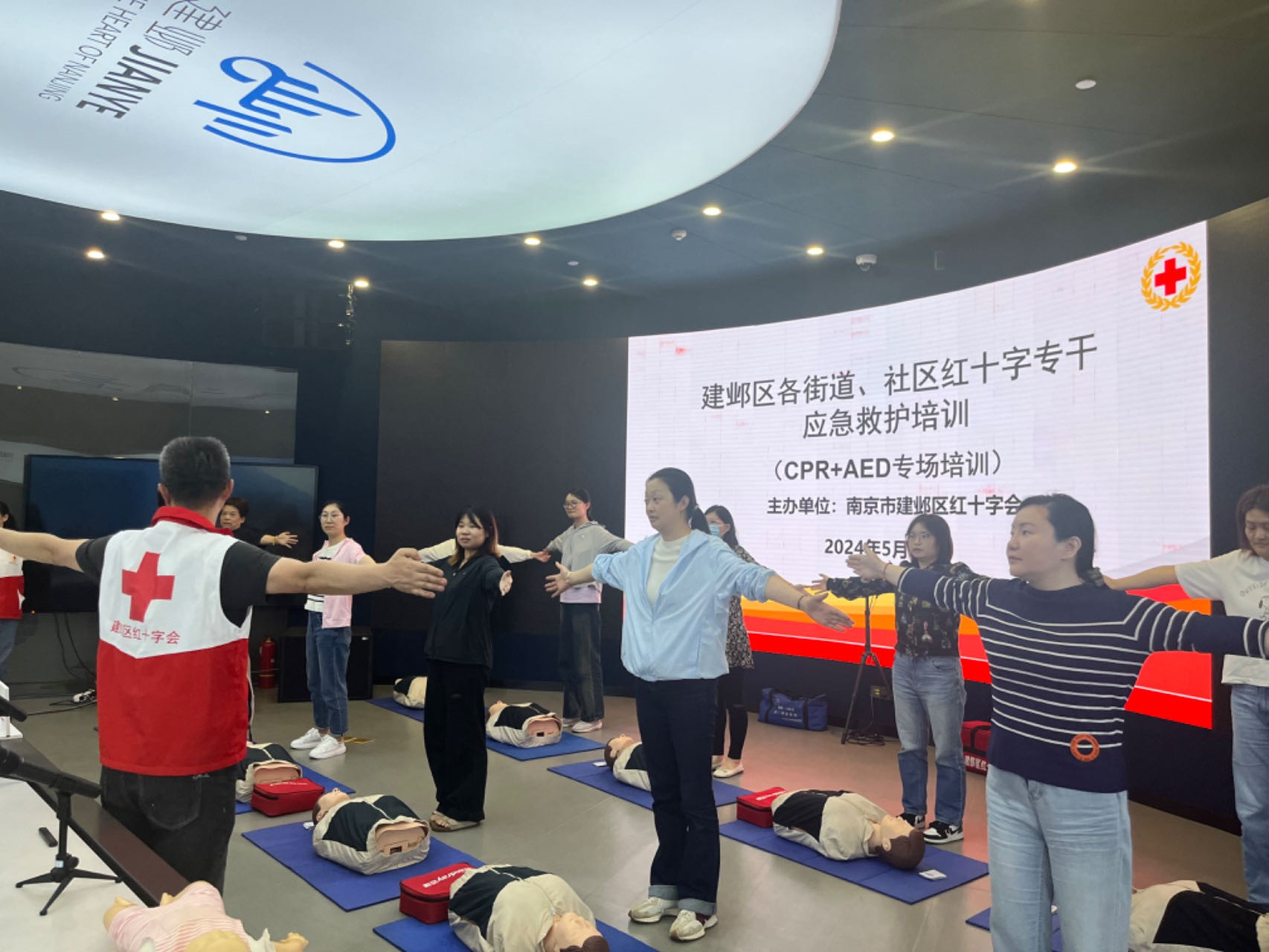 走进企业、学校、社区……除开展专场培训外,建邺区红十字会近年将应急救护方法尽可能传播至最广泛人群,宣传红十字会“三救三献”知识,让更多市民掌握应急救护技能,为“心”护航、“救”在身边。