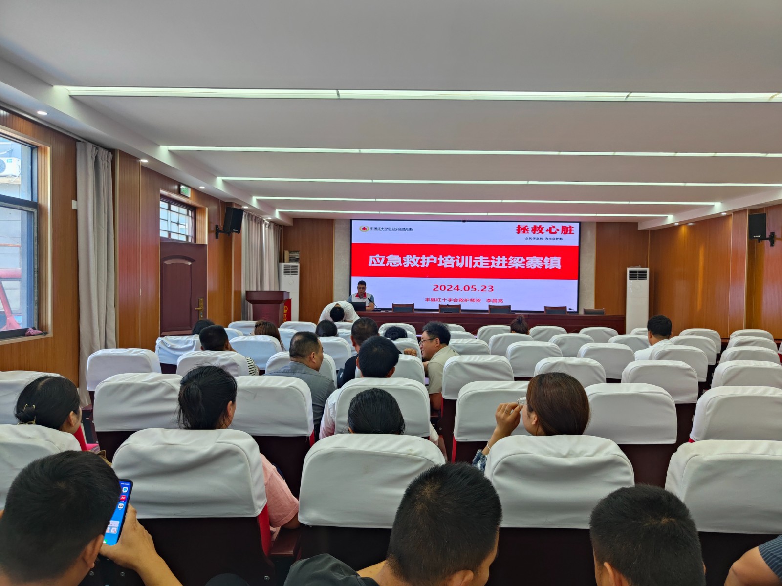 5月23日,丰县红十字会委派师资来到梁寨镇为基层干部开展了一期应急救护知识培训。