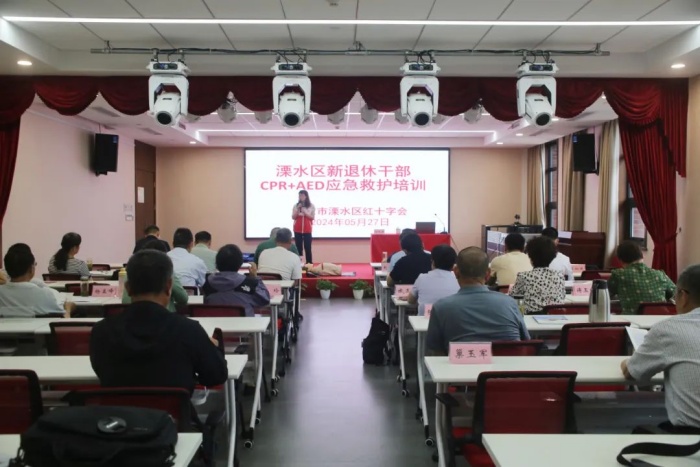 为全面普及应急救护知识,5月27日下午,溧水区红十字会组织师资团队为区30余名新退休干部开展应急救护专场培训。