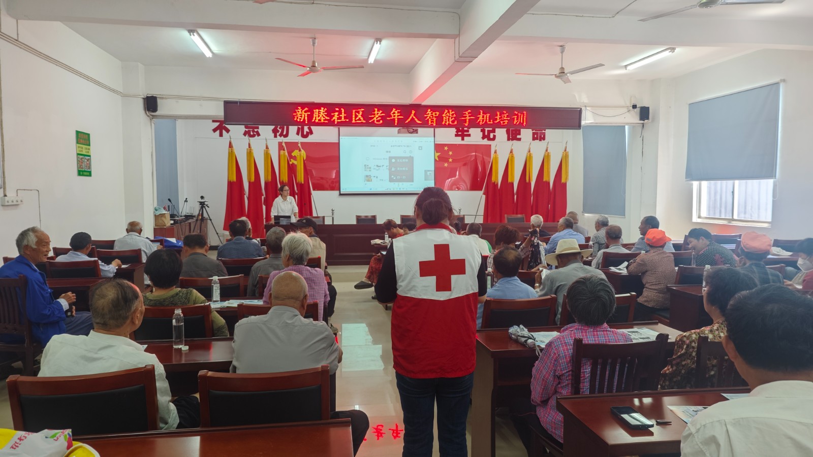 新庄街道红十字会在新塍社区举办的老年人智能手机培训吸引了大批老年人参加,红十字志愿者为老年人讲解了如何使用智能手机,并给老年人示范了智能手机微信下载安装、聊天支付、医院挂号及滴滴出行等方面的操作。参加培训的老年人听得津津有味,纷纷掏出自己的手机,根据指导,一步步地进行操作着。