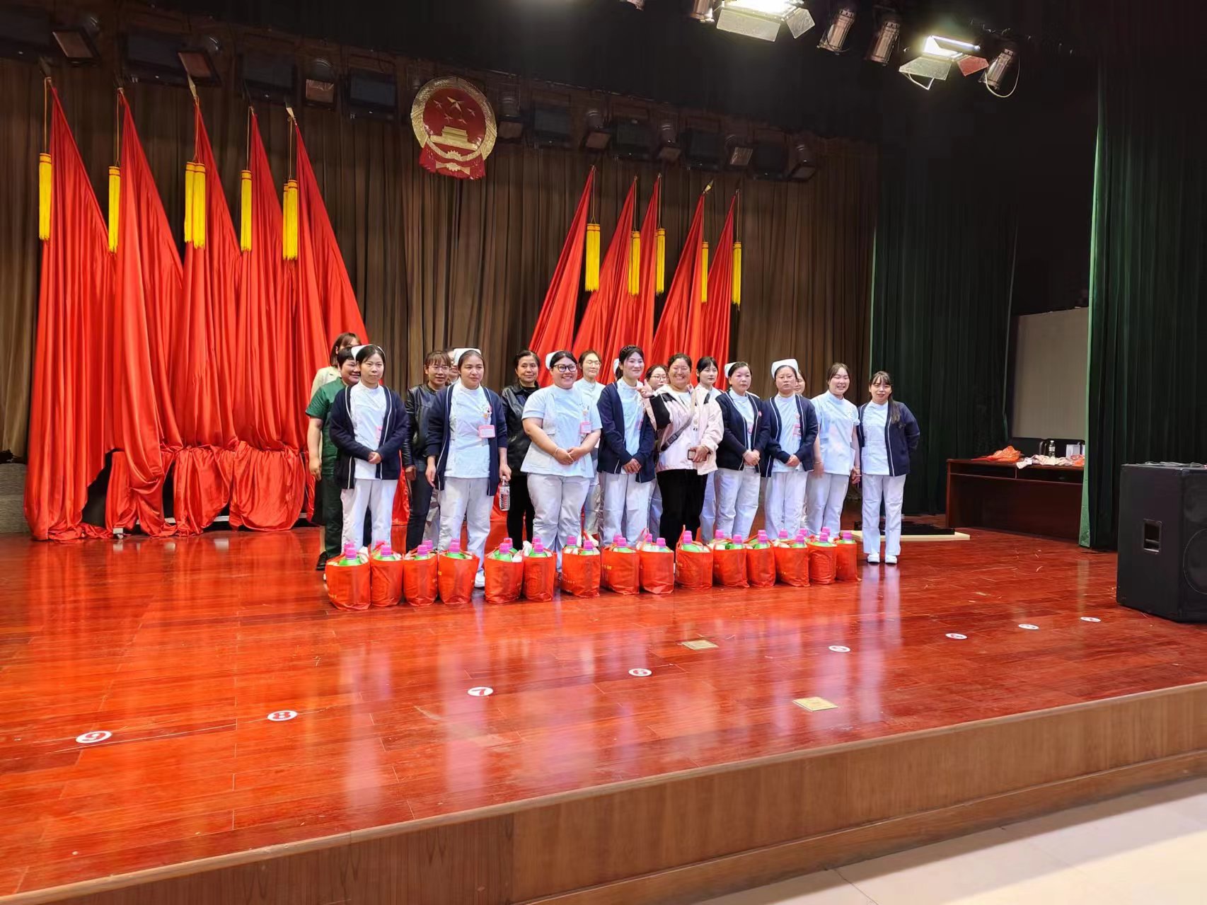 为表达心意,县红十字会为50名一线护士精心准备了洗化大礼包和手捧鲜花,感谢她们平日的辛勤工作和无私奉献,祝福她们节日快乐!