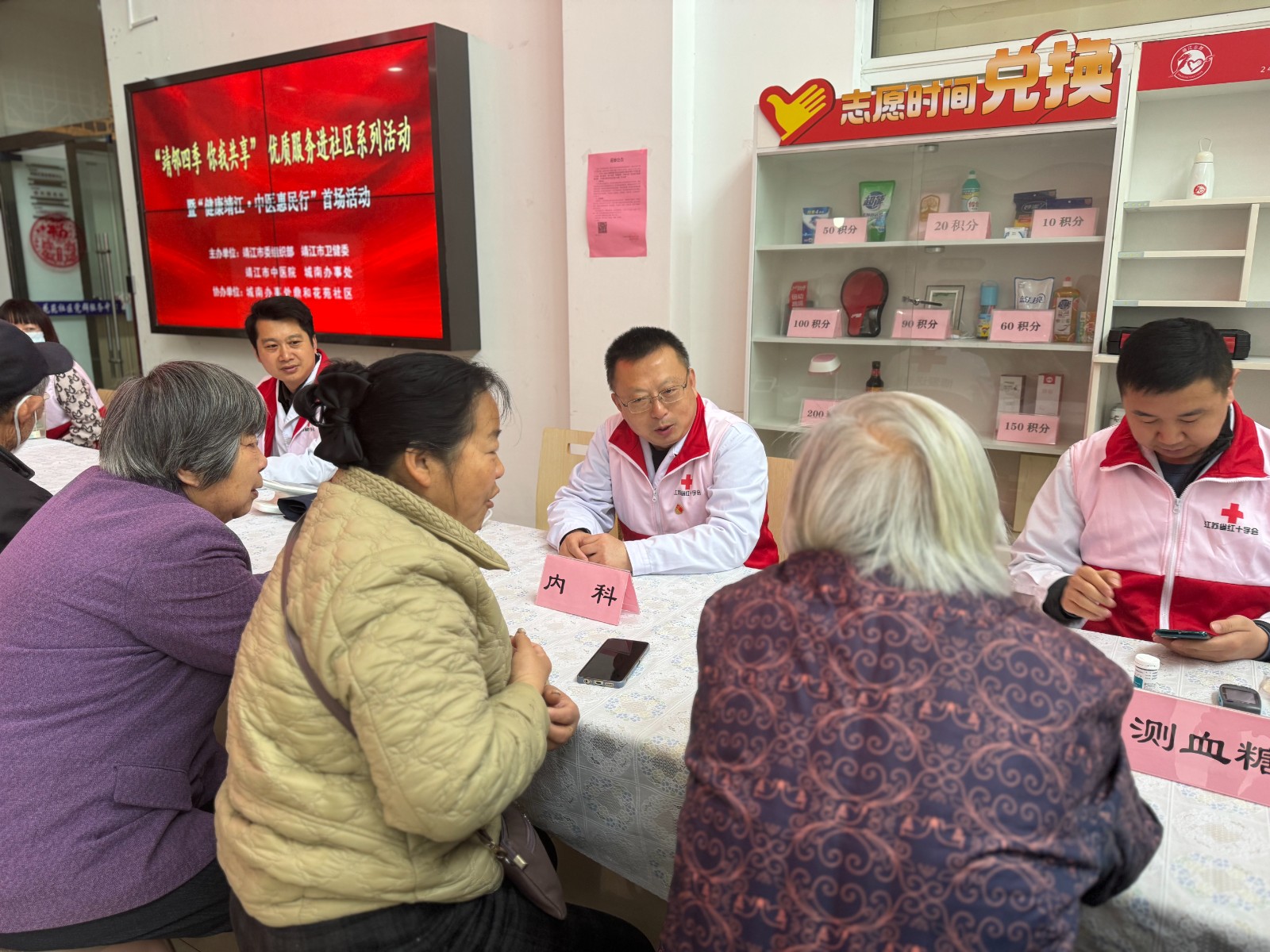 2024年4月13日(星期六)上午8:30, 靖江市红十字会联合市中医院在城南办事处鼎和花苑社区党群服务中心开展博爱送健康活动。