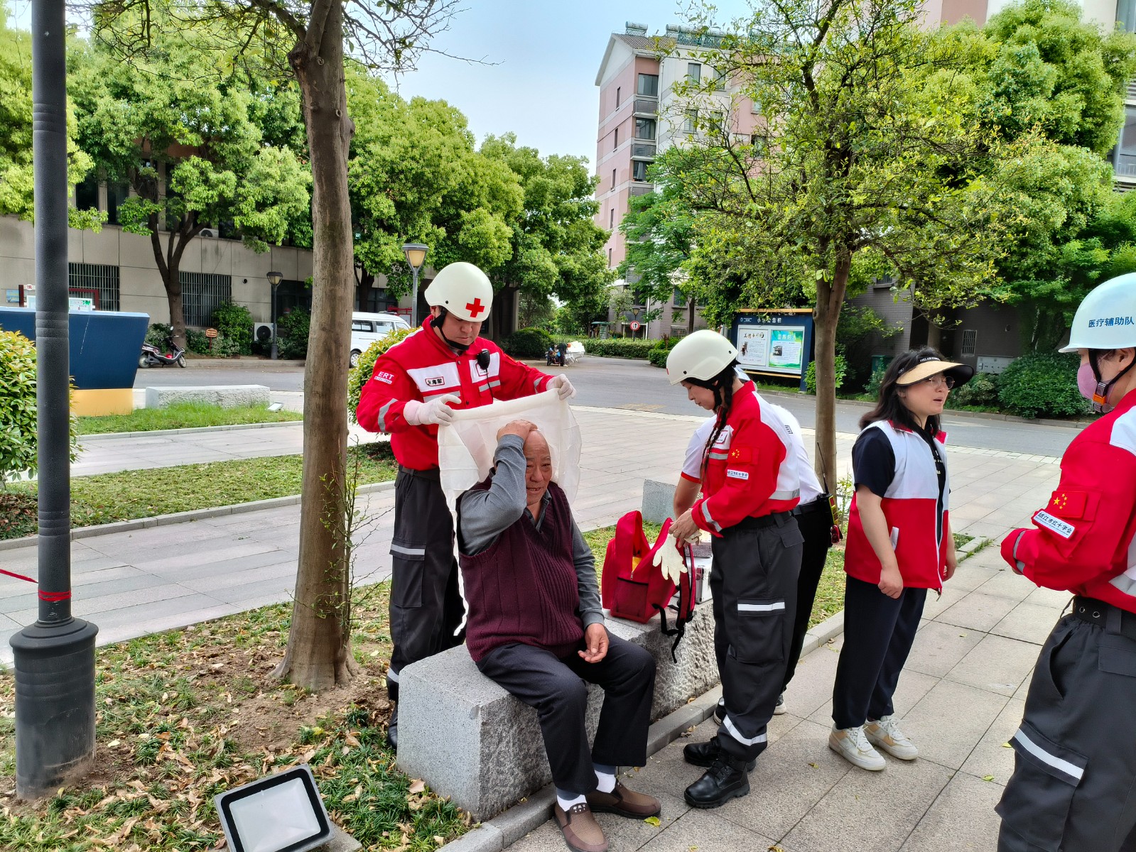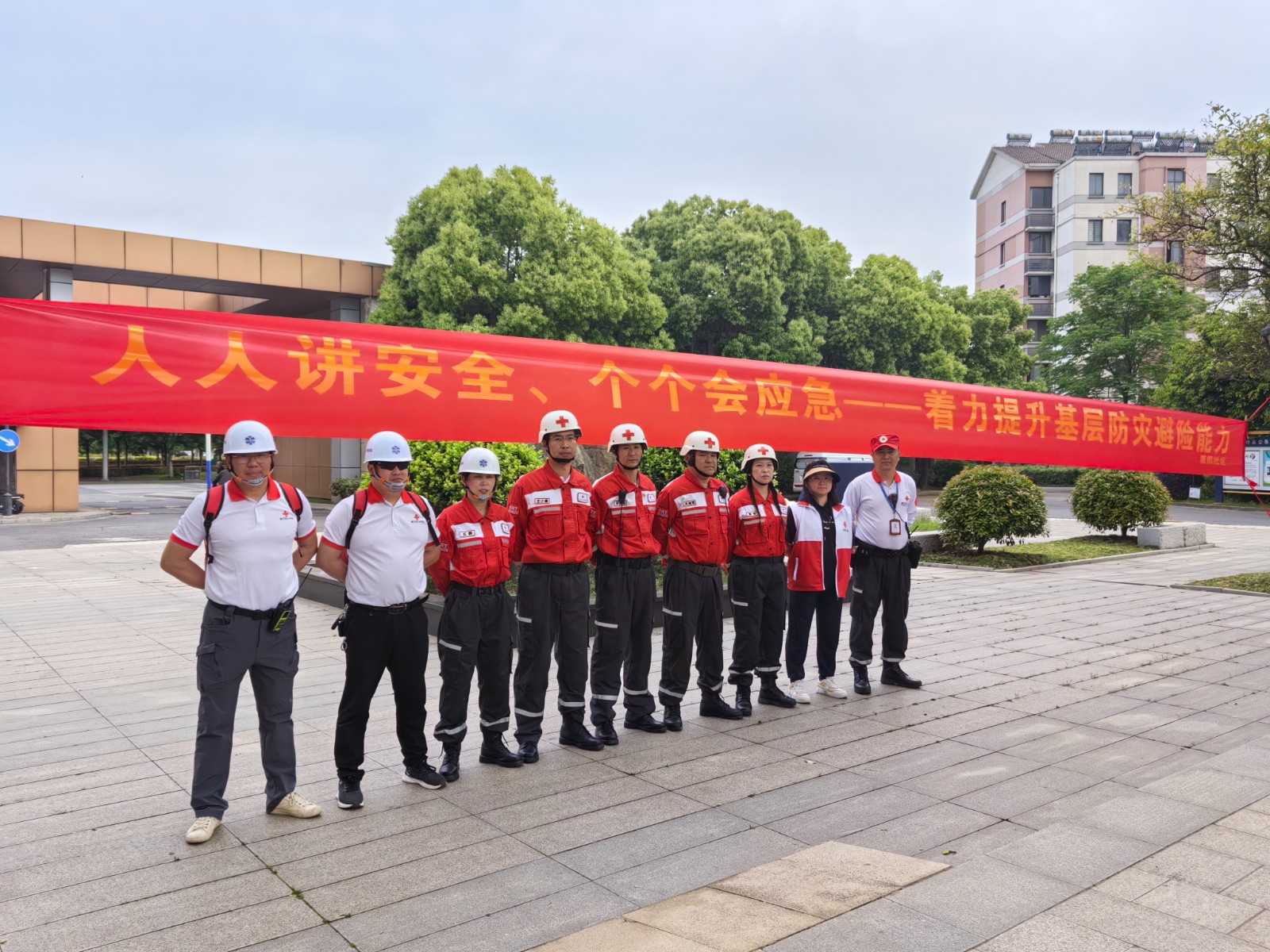[泰州市]靖江红十字会在康阳社区开展“人人讲安全,个个会应急”防灾减灾救援演练活动
