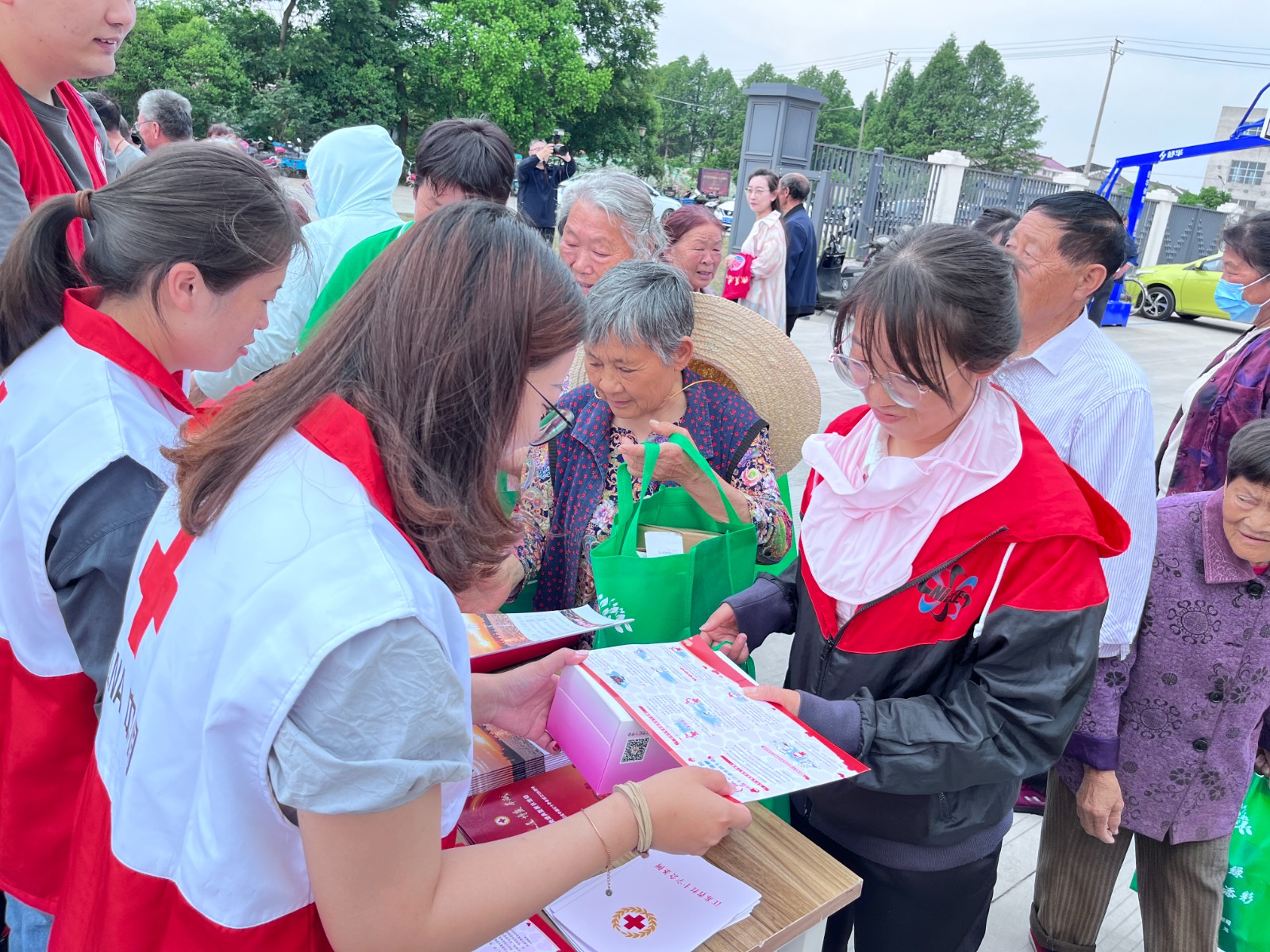 靖江市红十字会通过在活动现场设立宣传咨询台、发放宣传资料和宣传品等形式,向大进村村名发放红十字知识、无偿献血、造血干细胞捐献、人体器官捐献、人道救助等宣传资料,动员大家主动了解红十字、捐献常识,积极参与到无偿献血、造血干细胞捐献、人体器官捐献事业中来,奉献一片爱心,挽救更多的生命。村民对此也表现出了极大的热情。