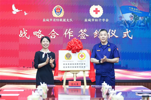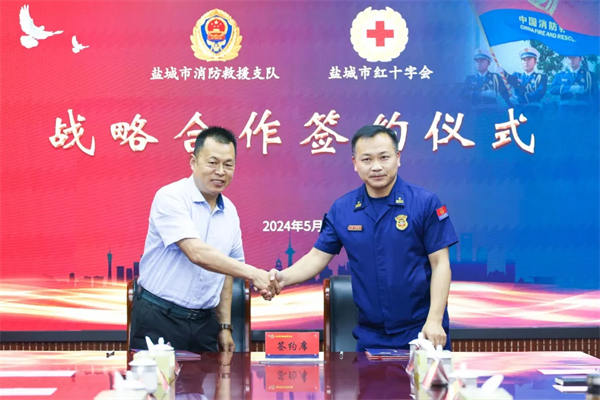 [盐城市]人道红携手火焰蓝|市红十字会与消防救援支队签订战略合作协议