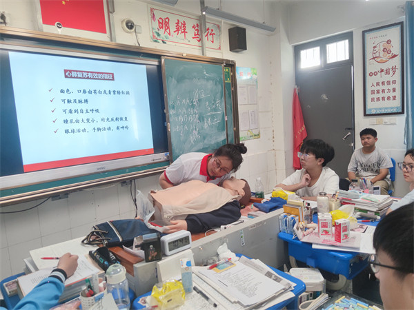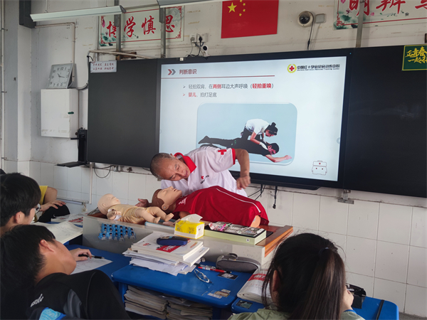 培训中,红十字培训师们还现场演示了心肺复苏的方法,包括按压频率、按压深度、按压手法、人工呼吸方法等,帮助师生清楚理解和掌握相关知识与技能。在培训师的指导下,大家踊跃尝试,亲自操作和演练所学知识,规范按压位置与手法,严谨操作角度、力度和强度,一边交流,一边改正,认真练习动作要领。师生们反响热烈,纷纷表示,此次培训内容详实,气氛轻松愉快,收获满满,提高了应对意外伤害急救能力的同时,也学到了应急救护知识。