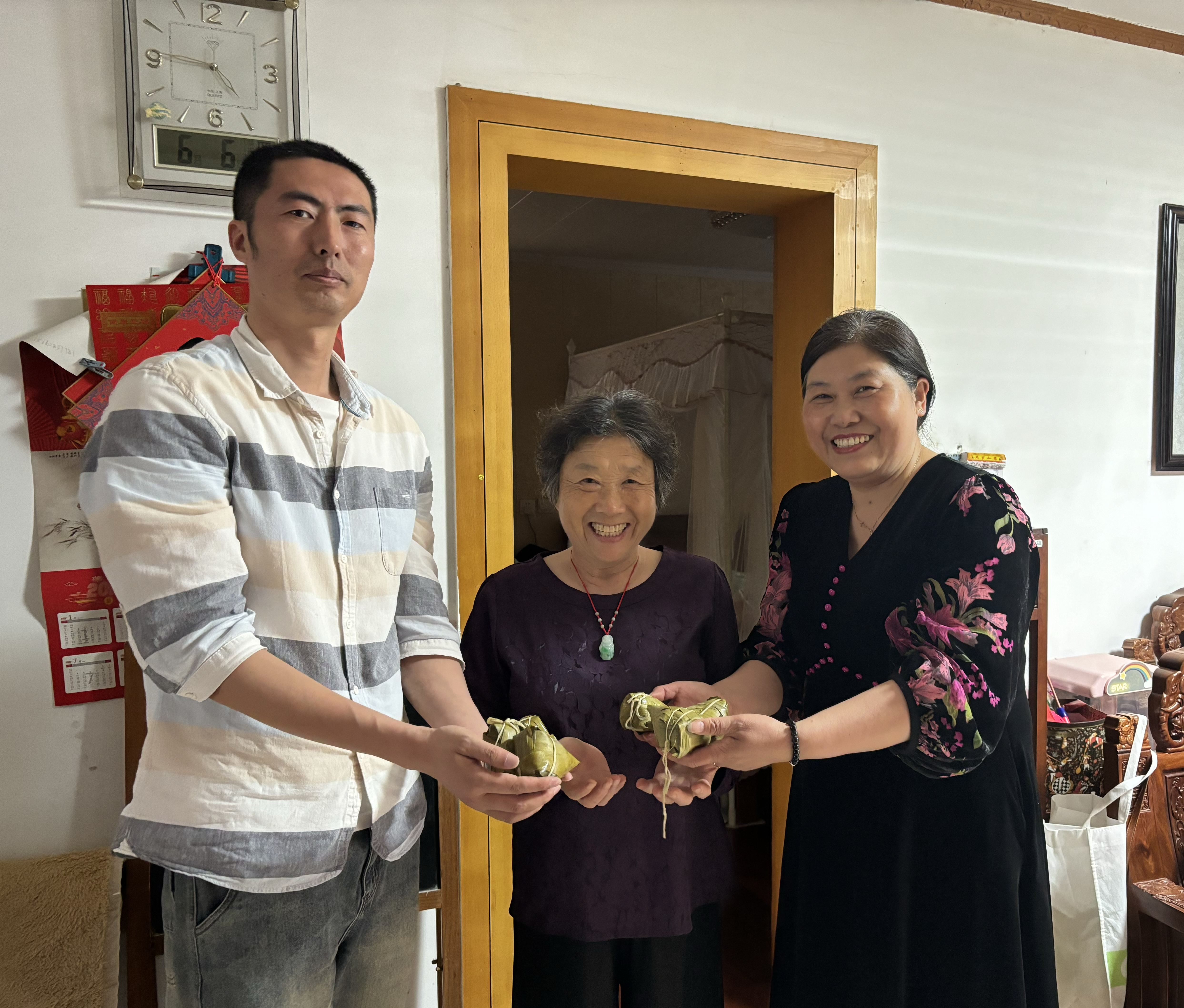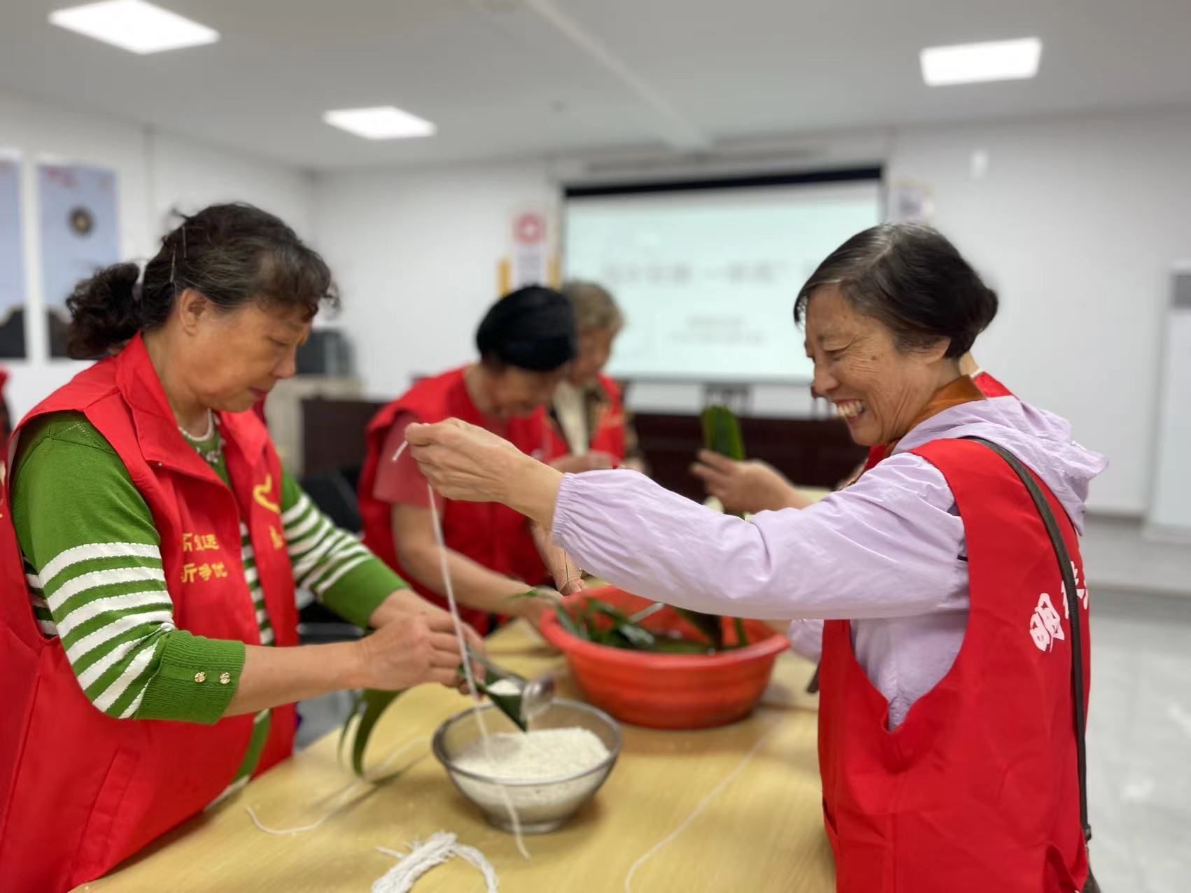 红十字志愿者邀请辖区内会包粽子的居民带领大家一起包粽子。现场气氛热烈,欢声笑语、其乐融融,大家一边分享各自家乡的端午习俗,一边学着包粽子。不一会儿,一个个粽子就成型了。活动结束后,志愿者又将一个个粽子送到高考考生家庭,送去端午祝福,同时也为他们加油打气,家长们笑的乐开了花。