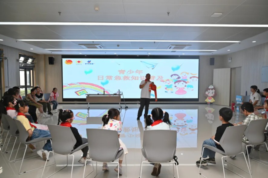 欢乐六一·别样精彩。破冰游戏,孩子们勇敢地展现自我,与同伴互动,增进彼此的了解,拉近心与心的距离。童心成长,“救”在身边。红十字应急救护培训师向孩子们普及溺水自救、火灾避险等急救知识,演示应急救护技能,增强孩子们珍爱生命的意识和自救互救的能力。元气满满的能量午餐,为孩子们补充营养和活力。一起分享节日蛋糕,观看动画电影《长安三万里》,甜蜜的滋味化作孩子们的笑脸,纯真而清澈。