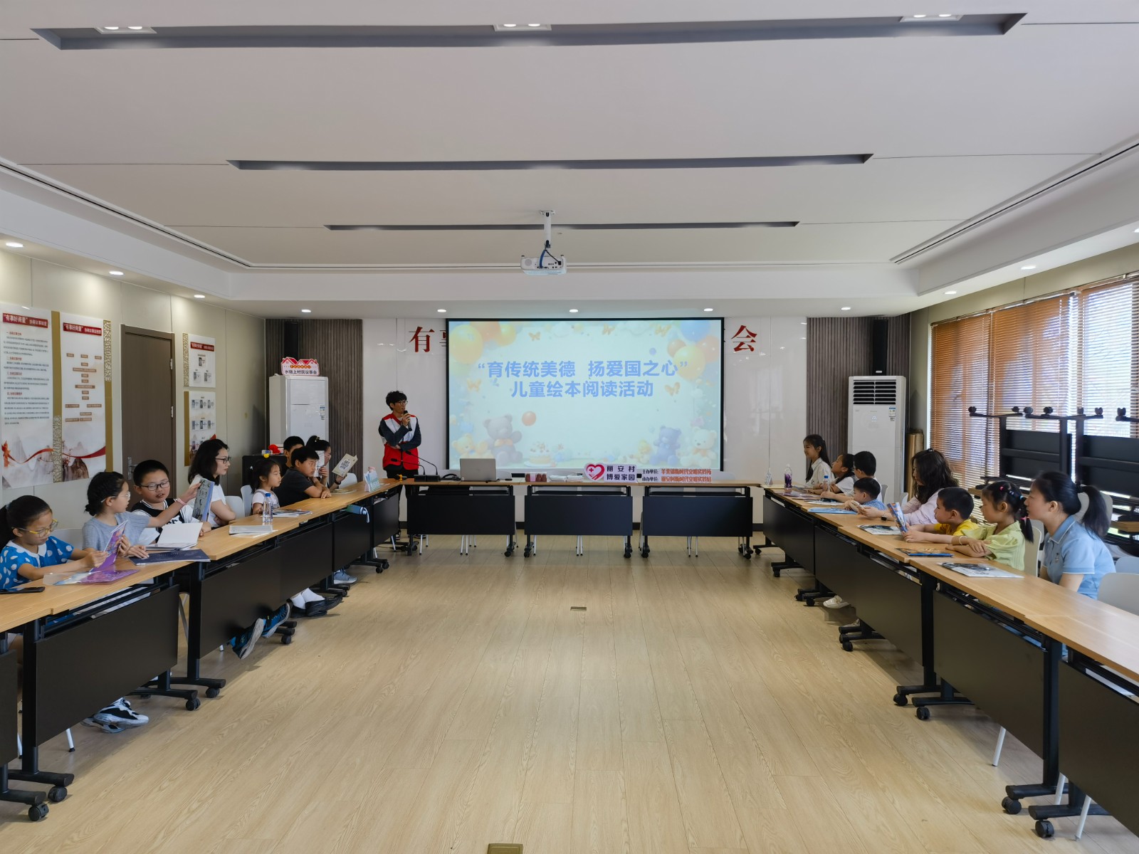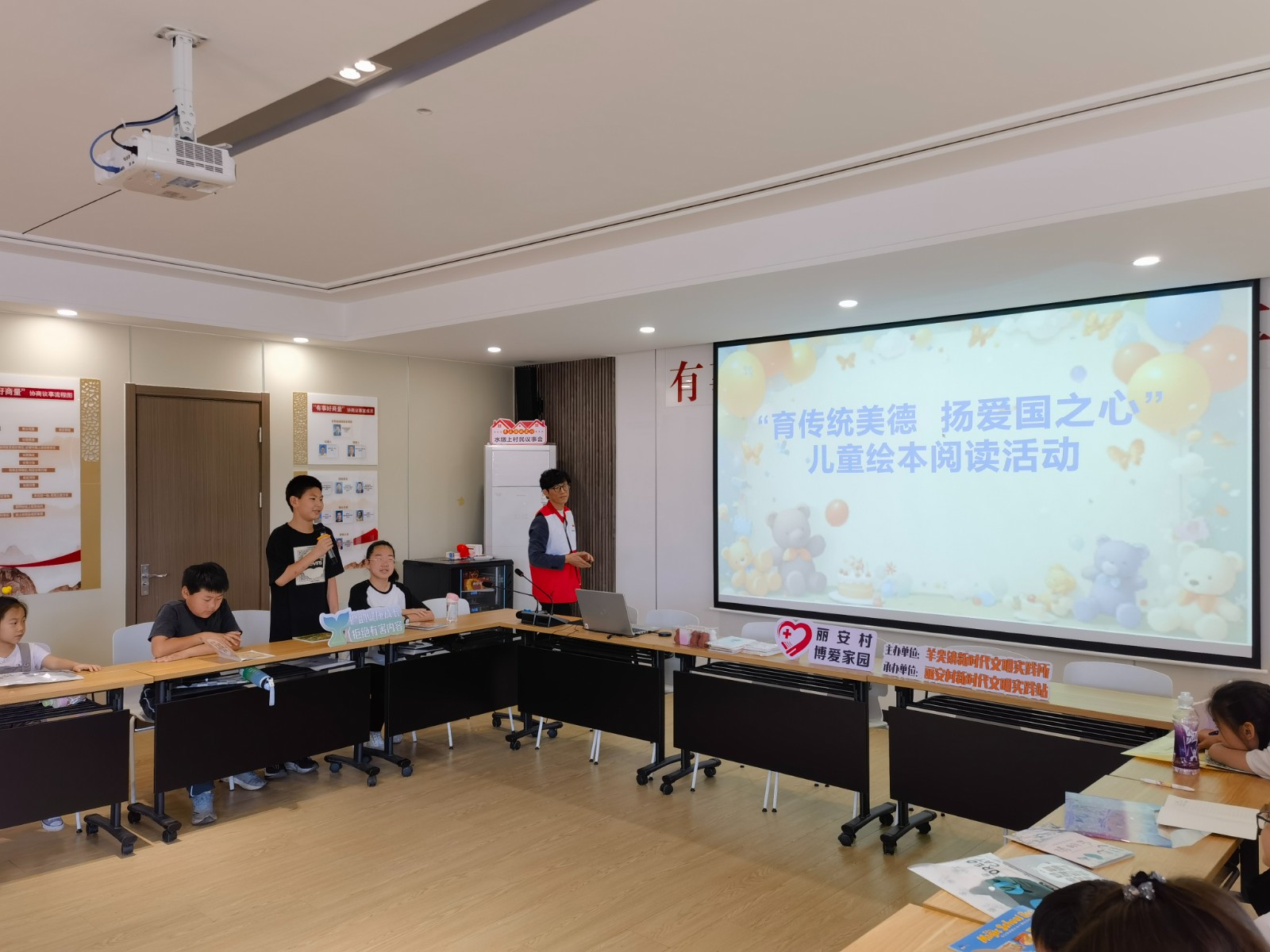 在阳光明媚、充满欢声笑语的初夏时节,为庆祝第74个“六一”国际儿童节,丰富丽安村少年儿童的成长体验,让孩子们收获绚烂多彩的童年,丽安村博爱家园组织开展“育传统美德,扬爱国之心”儿童绘本阅读活动。