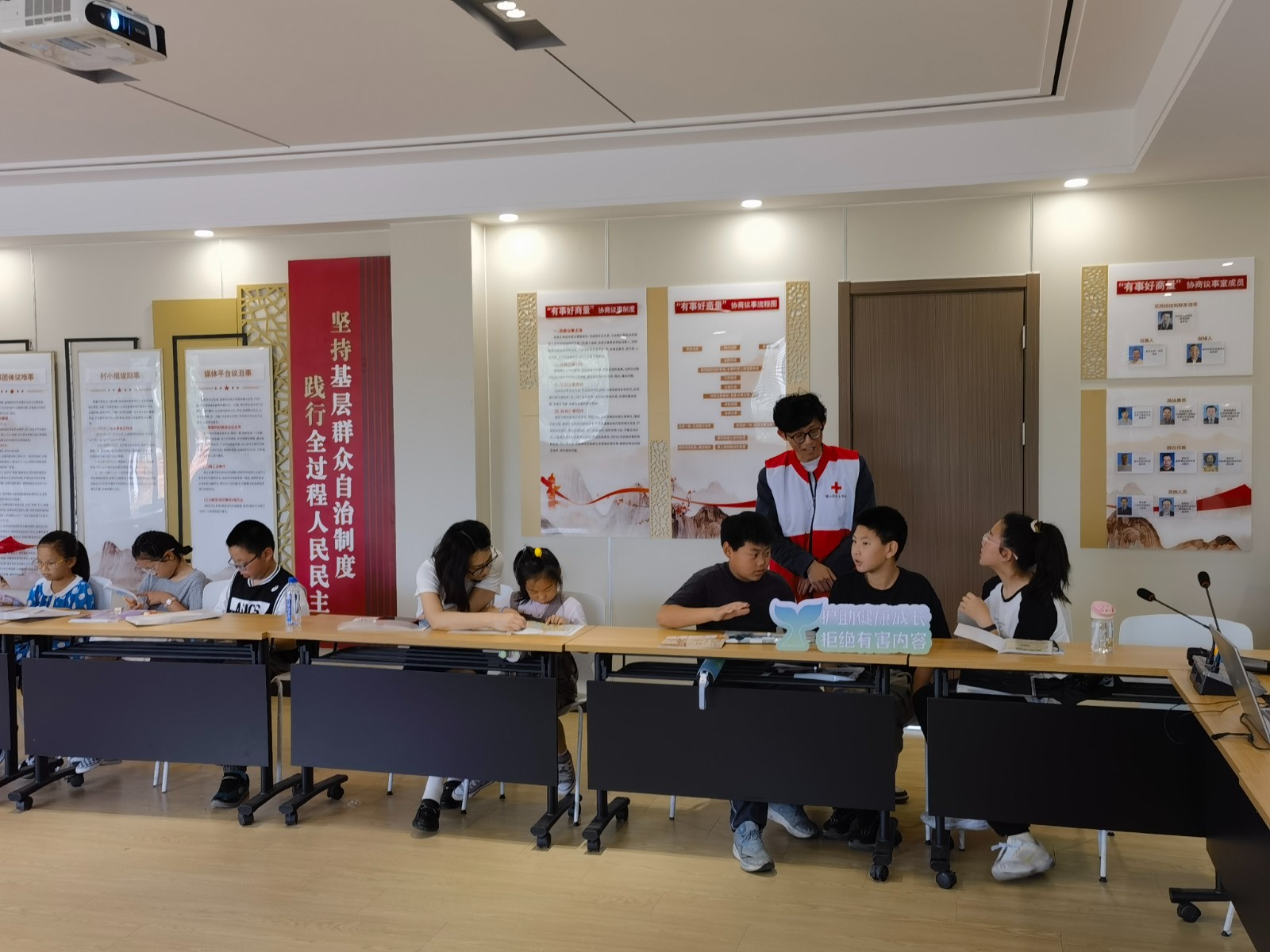 高年级的小朋友主动帮助低年级的孩子,孩子们的家长也纷纷加入到阅读中,帮助孩子更好地理解绘本内容。红十字志愿者与孩子们互动,考一考孩子们收获了哪些知识,还知道哪些相关的知识,现场氛围热烈。孩子们手不释卷,互相交换阅读,充分展现了自己的知识宝库,随后踊跃发言,挨个畅谈阅读后的收获。