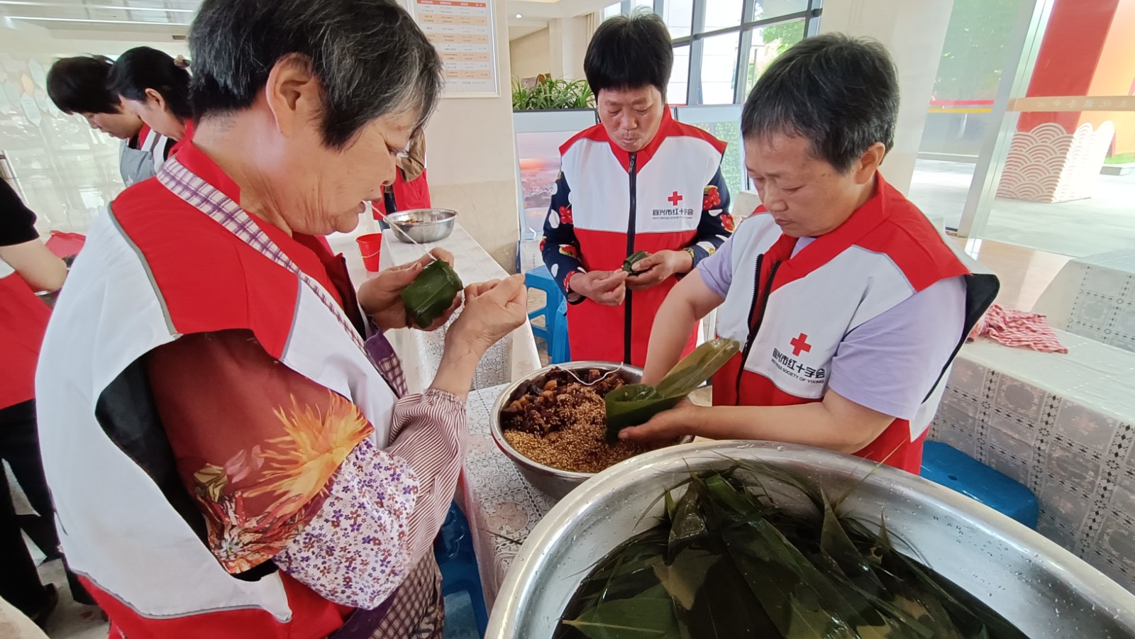农历五月初五是中华民族传统节日端午节,为了弘扬中华民族优秀的传统文化,宜兴市张渚镇红十字会组织志愿者和各族群众相聚张渚镇新时代文明实践所,开展主题为““粽”享端午 情满桃溪”包粽子活动。