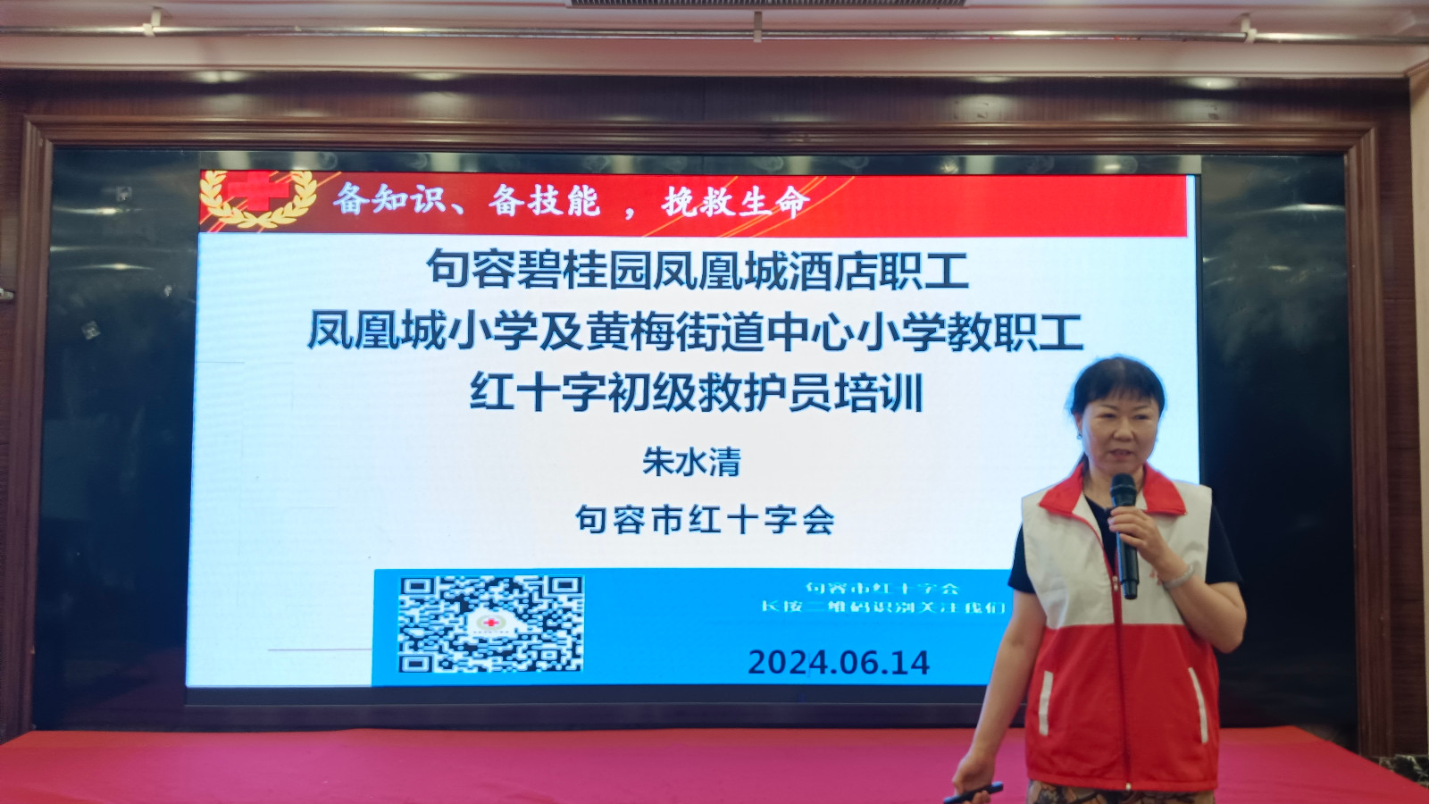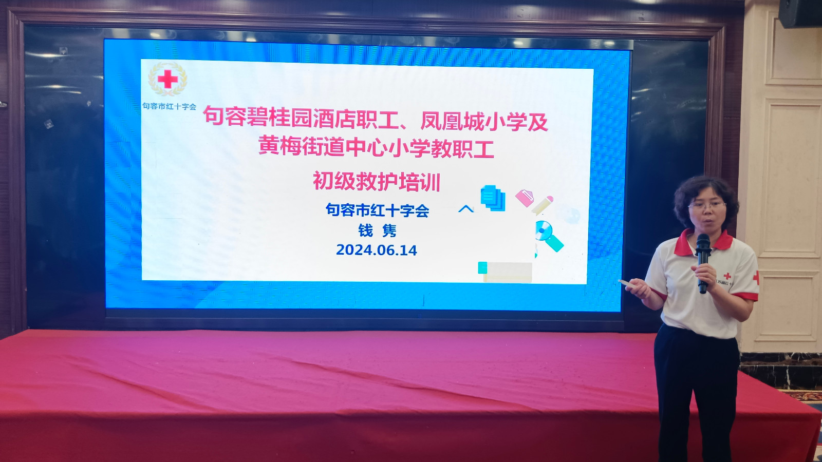 6月14日,一场红十字初级救护员培训活动在句容碧桂园凤凰城酒店举行,来自该酒店的部分职工和凤凰城小学、黄梅街道中心小学的教职员工总计60多人参加培训。