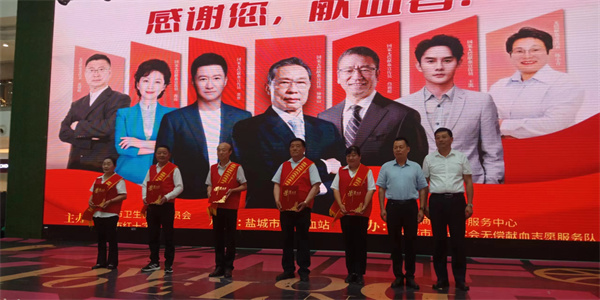 今年6月14日是“世界献血者日”20周年,盐城市红十字会与盐城市卫健委在宝龙广场共同举办了纪念“6.14”世界献血者日无偿献血表彰大会和文艺演出活动。盐城市红十字会、盐城市卫健委、盐城市中心血站领导参加了此次活动。在表彰会上,市红十字会党组成员、副会长徐维林为潘定龙等5名志愿者颁发全国无偿献血志愿服务奖终身荣誉奖、市卫健委党委委员、副主任张鹏为陈建松等5名志愿者颁发全国无偿献血奉献奖终身荣誉奖。颁奖结束后领导对现场宣传人员和献血者进行慰问并参观献血屋。