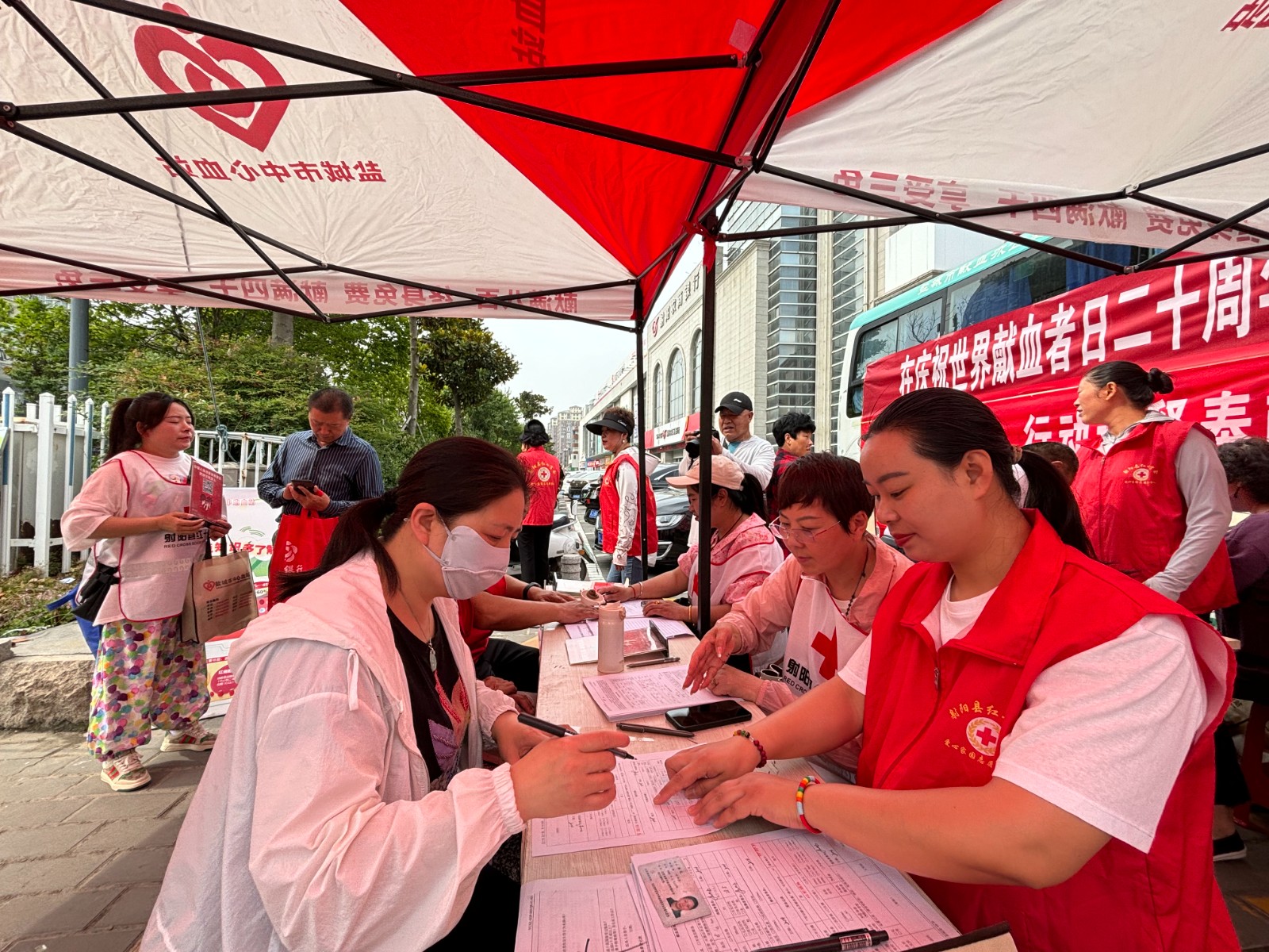 [盐城市]热血谱写青春华章 献血共筑爱心长城——射阳县红十字会开展纪念“世界献血者日”20周年宣传活动