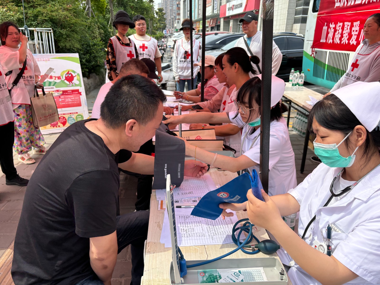 活动现场气氛热烈,市民群众们纷纷驻足观看。20余名红十字志愿者身穿红色志愿者服装,精神饱满,热情地向群众发放宣传资料,介绍献血的意义、流程和注意事项,解答大家的疑问,动员群众积极投身于无偿献血的行列中来。红十字冠名医院中医院医护人员细致地为现场群众提供量血压、测血糖、健康咨询等志愿服务。