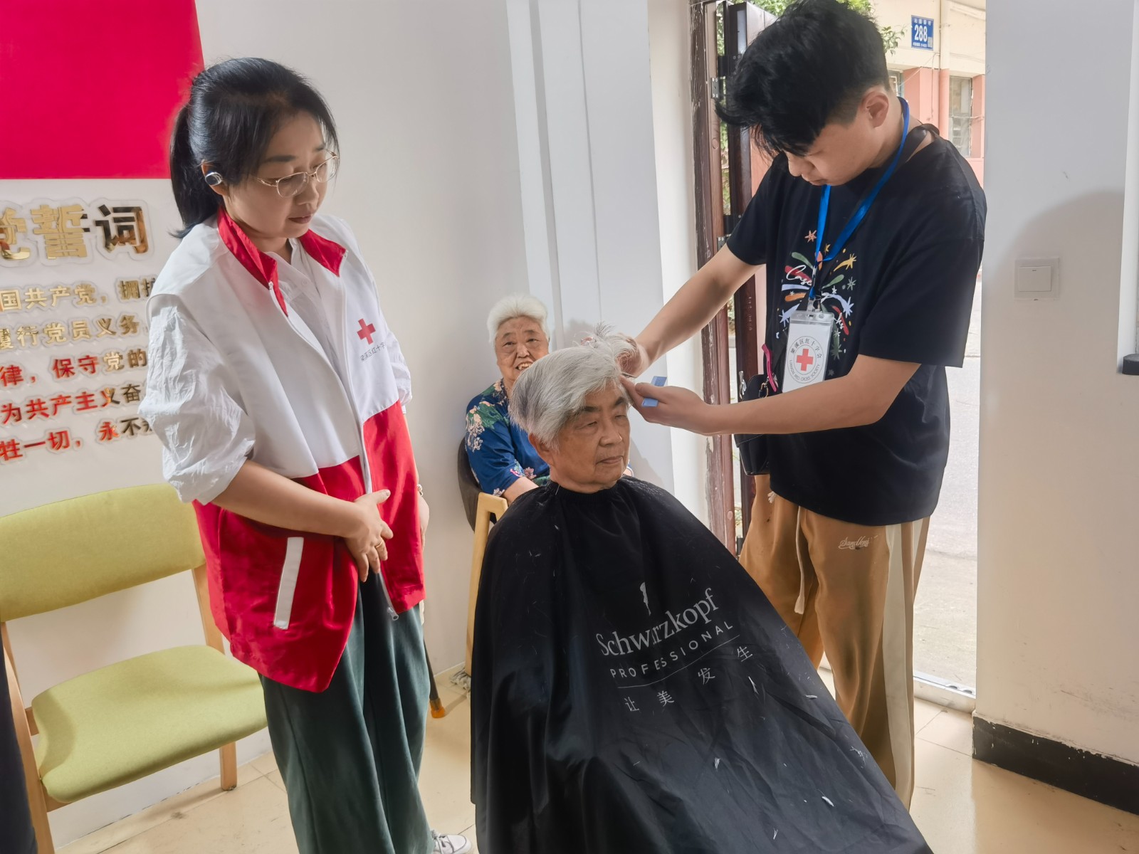 为弘扬"人道、博爱、奉献"的红十字精神,6月11日上午,清名桥街道红十字会邀请南禅寺名品理发店来到清名桥街道沁园第二社区“星火聚力”活动室开展"爱心义剪"志愿服务活动,把温暖送到老人们的心坎上。