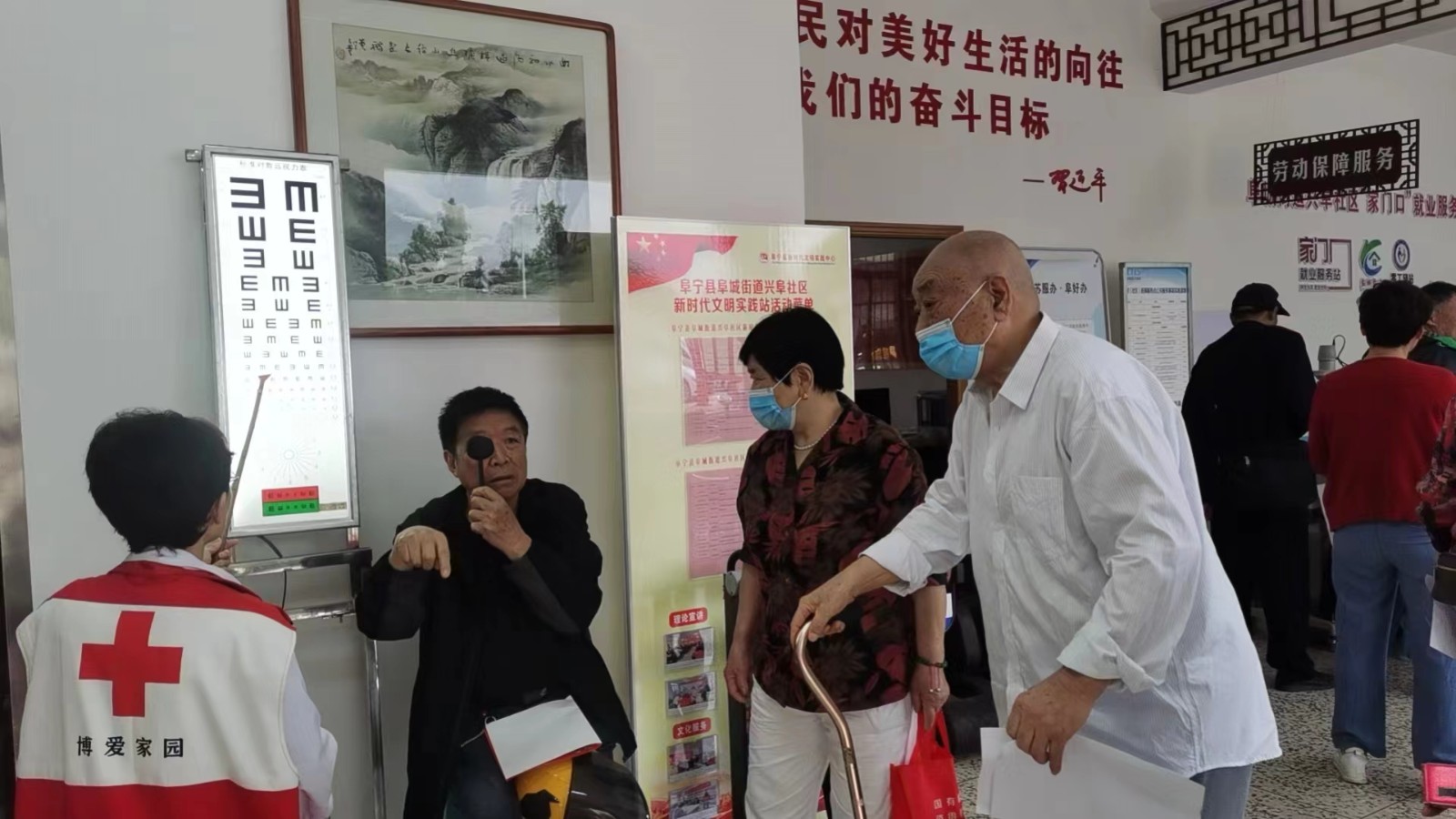 近日,阜宁县红十字会联合施庄眼科医院对阜城街道七个社区的60岁以上老人进行免费检查,红十字会组织的一场旨在弘扬“人道、博爱、奉献”红十字精神的义诊活动,为共同为构建和谐社会贡献一份力量。