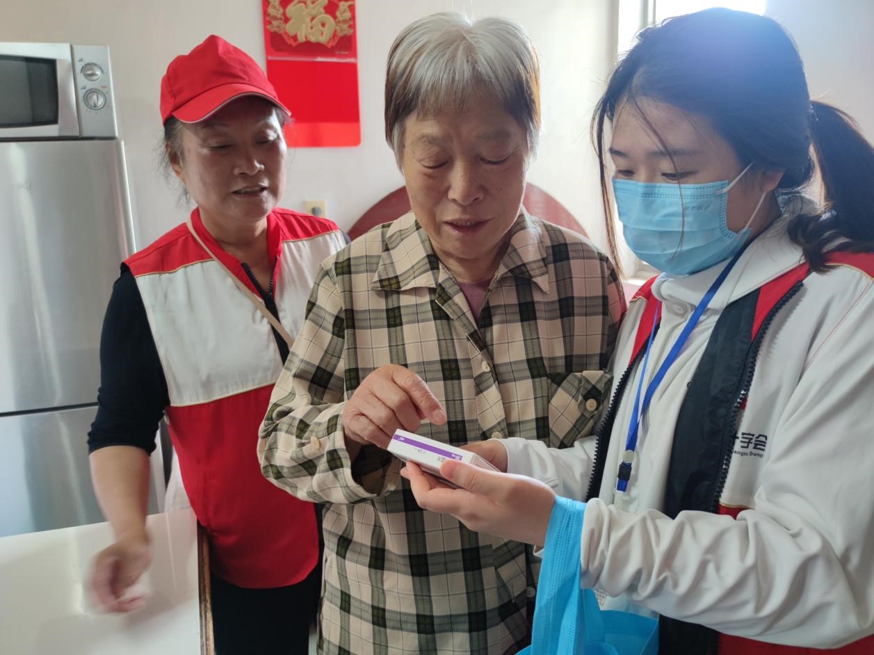 为弘扬红十字精神,关爱老年人身体健康,近日城东街道新桥北村社区博爱家园的志愿者与社区医生一起来到高龄独居老人家中,上门为老人提供健康保健指导。