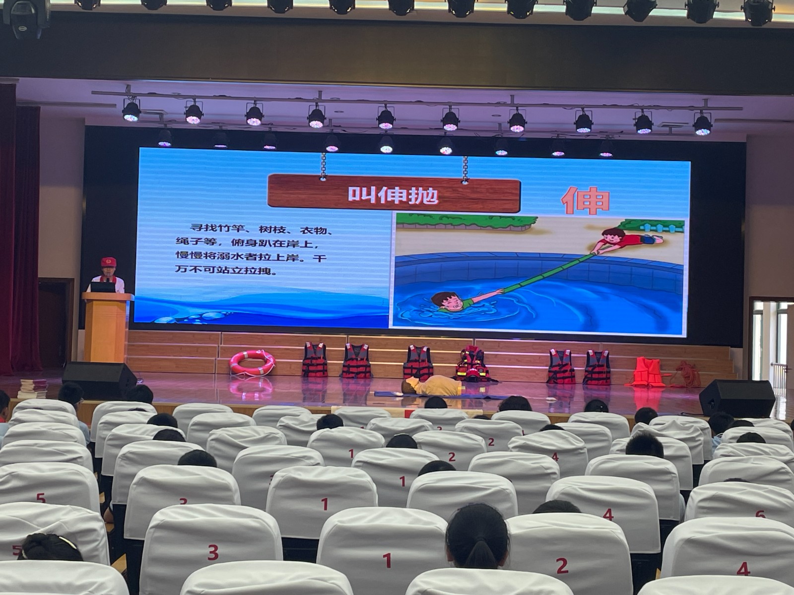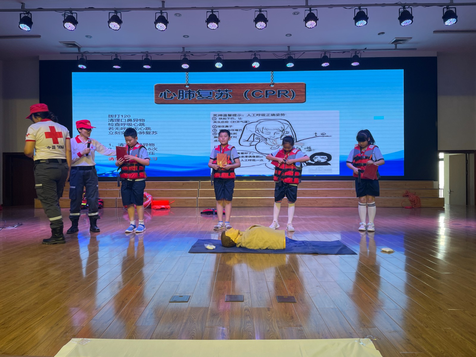 “什么是溺水”、“哪些地方会溺水”、“溺水应该怎么做” 。活动中,省红十字救护师资通过PPT展示、播放专题片、发放宣传手册和现场教学等方式,深入浅出向孩子们介绍了水上安全知识,讲述了发生在身边的溺水事件,教育引导同学们树立安全避险意识,不私自下水游泳、不擅自与同学结伴游泳、不到无安全设施的水域游泳、不到不熟悉的水域游泳、不到危险水域旁玩耍嬉戏、不盲目下水施救,发现险情相互提醒,及时报告,加强自我约束,织密编牢防溺水“安全网”。
