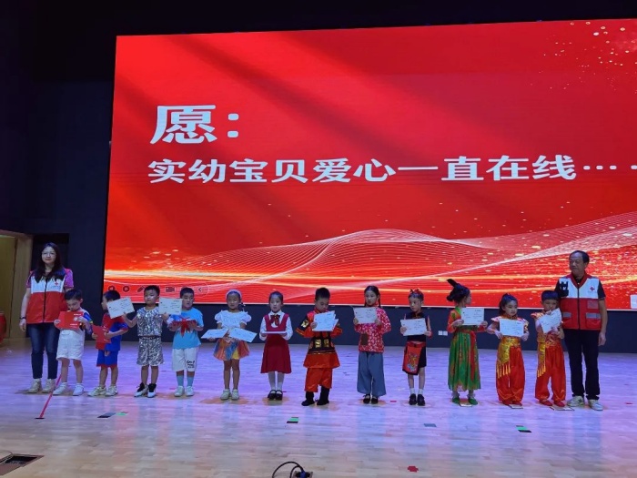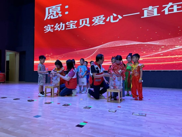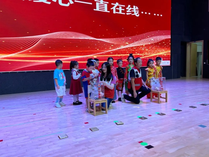 随着音乐响起,仪式正式开始,“积小善,成大爱,我们将小爱化作点点繁星,照耀孩子们的心灵,让善爱在孩子们心中生根发芽”在主持人的带领下,小朋友们开始将义卖获得的爱心款全部投入区红十字会的捐赠箱里,每个小朋友脸上都洋溢着快乐与满足,此刻,孩子们体会到了,我献出了一份爱心,而这份爱心会随着心的温度温暖着有需要的人在活动中表现积极的小朋友还收到了区红十字会工作人员颁发的爱心证书。