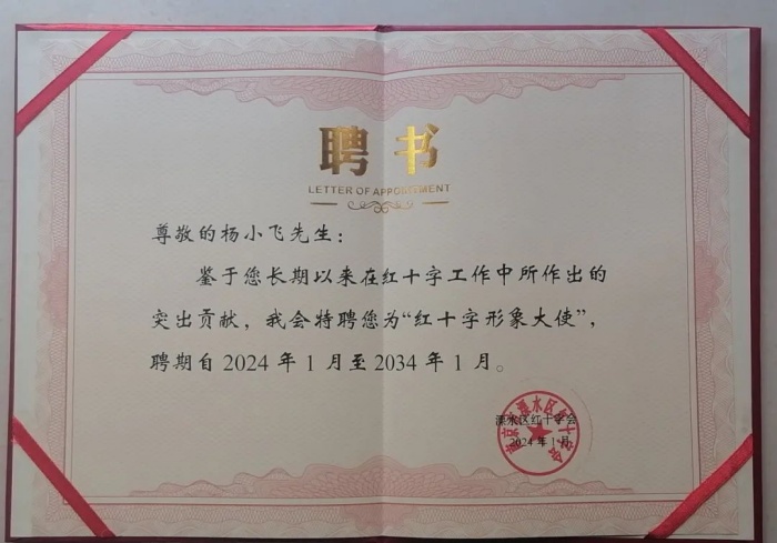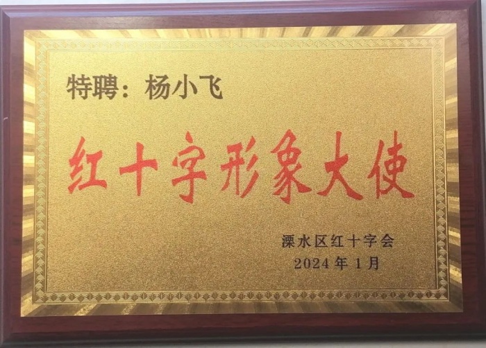[南京市]捐友杨小飞:被溧水区红十字会特聘为“红十字形象大使”