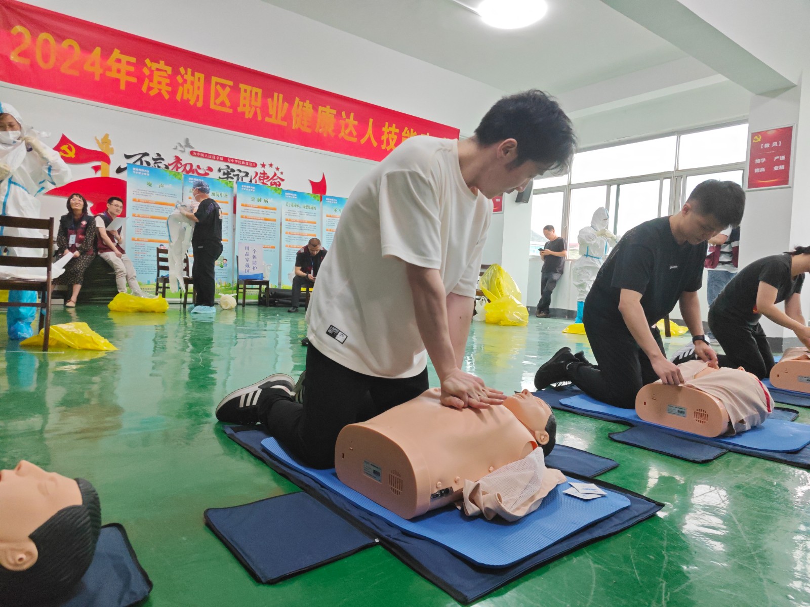 据统计,我国接触职业病危害因素的人群约2亿,职业病危害因素已成为影响成年人健康的重要因素,职业紧张、焦虑、抑郁、失眠等影响劳动者健康的心理疾患问题也日益突出。为深入推进职业健康保护行动,引导劳动者践行健康工作生活方式,提升职业健康素养水平。近日,滨湖区卫生健康委、区总工会、区红十字会联合举办了2024年滨湖区职业健康达人技能竞赛活动,胡埭镇共有5人参赛,其中王铖等3人参加企业组竞赛,边源等2人参加专业组竞赛。