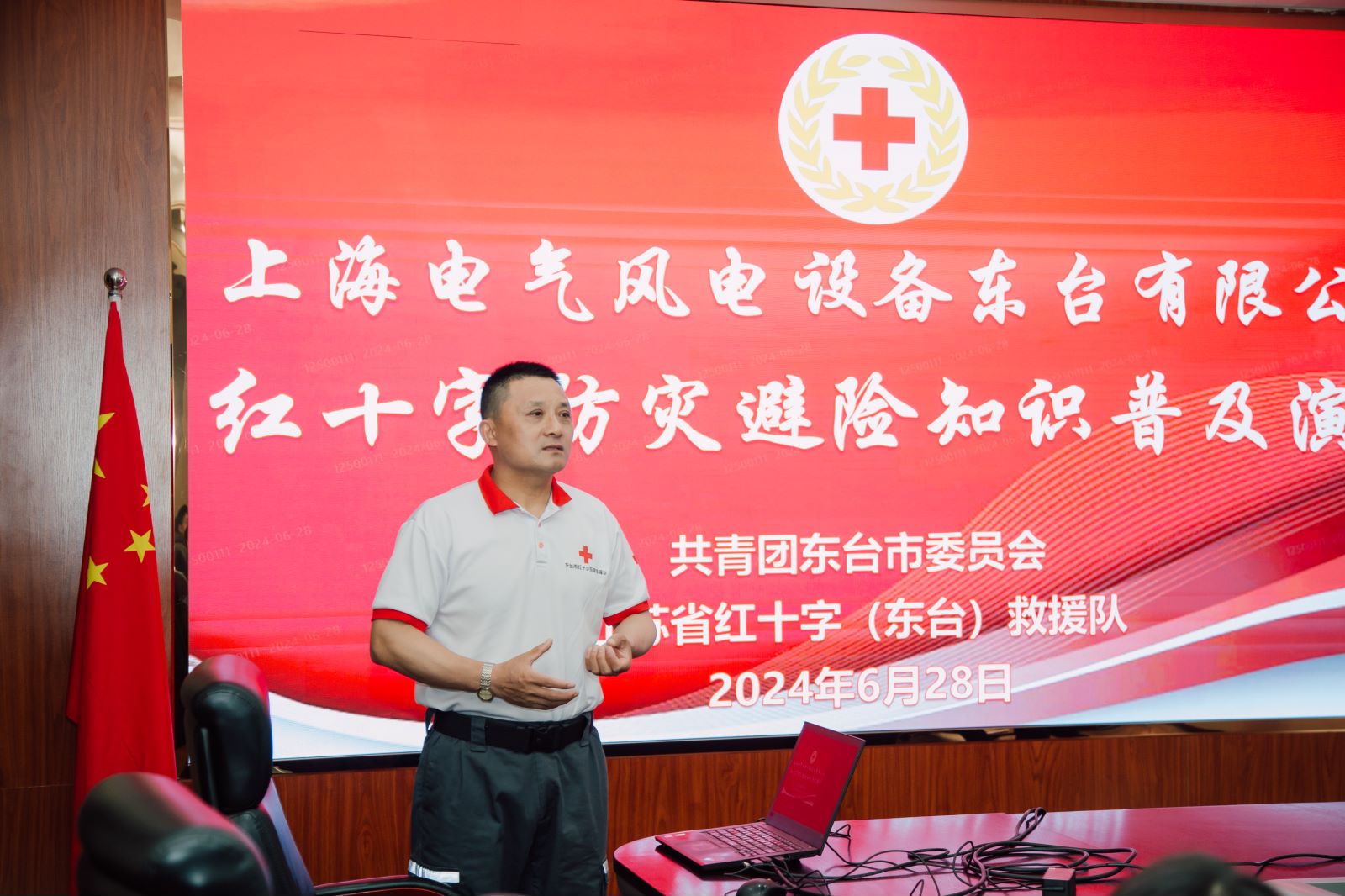 为进一步增企业消防责任意识和自救互救能力,有效防范遏制消防安全等事故发生,6月28日,共青团东台市委员会、江苏省红十字(东台)救援队联合走进上海电气风电设备(东台)有限公司,开展以“人人讲安全 个个会应急”——畅想生命通道为主题的防灾避险知识普及和消防演练。