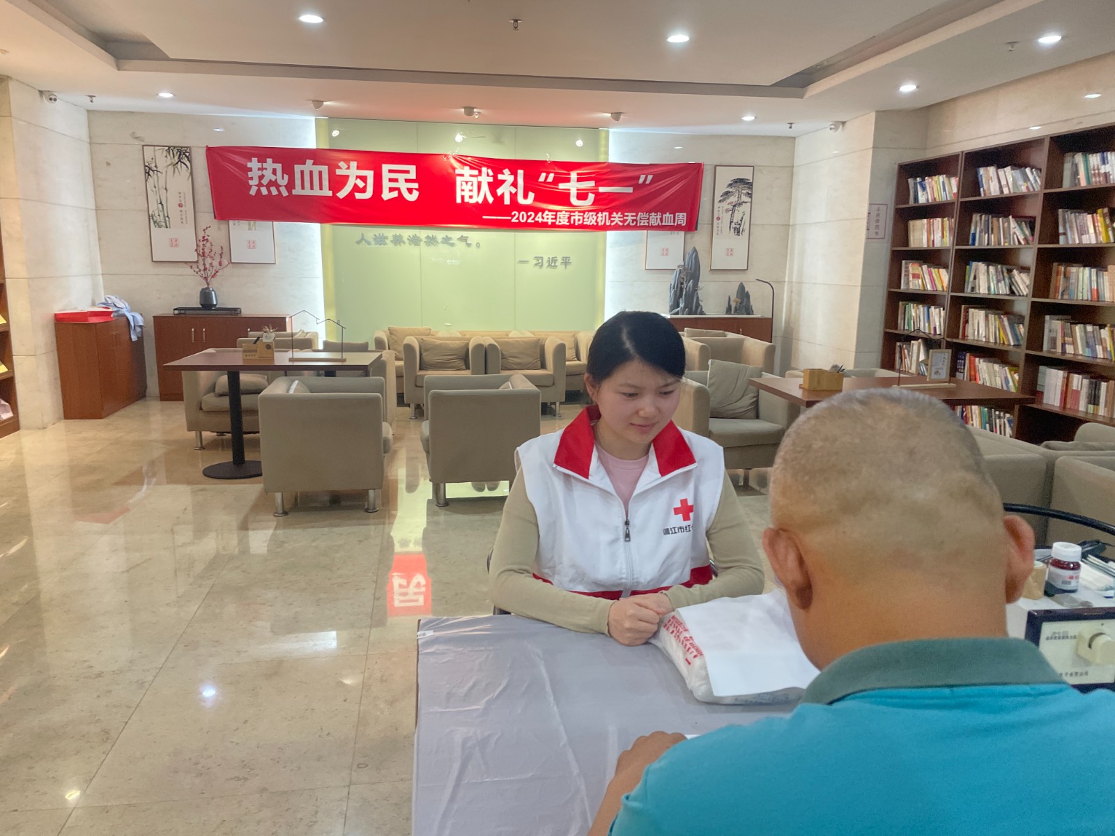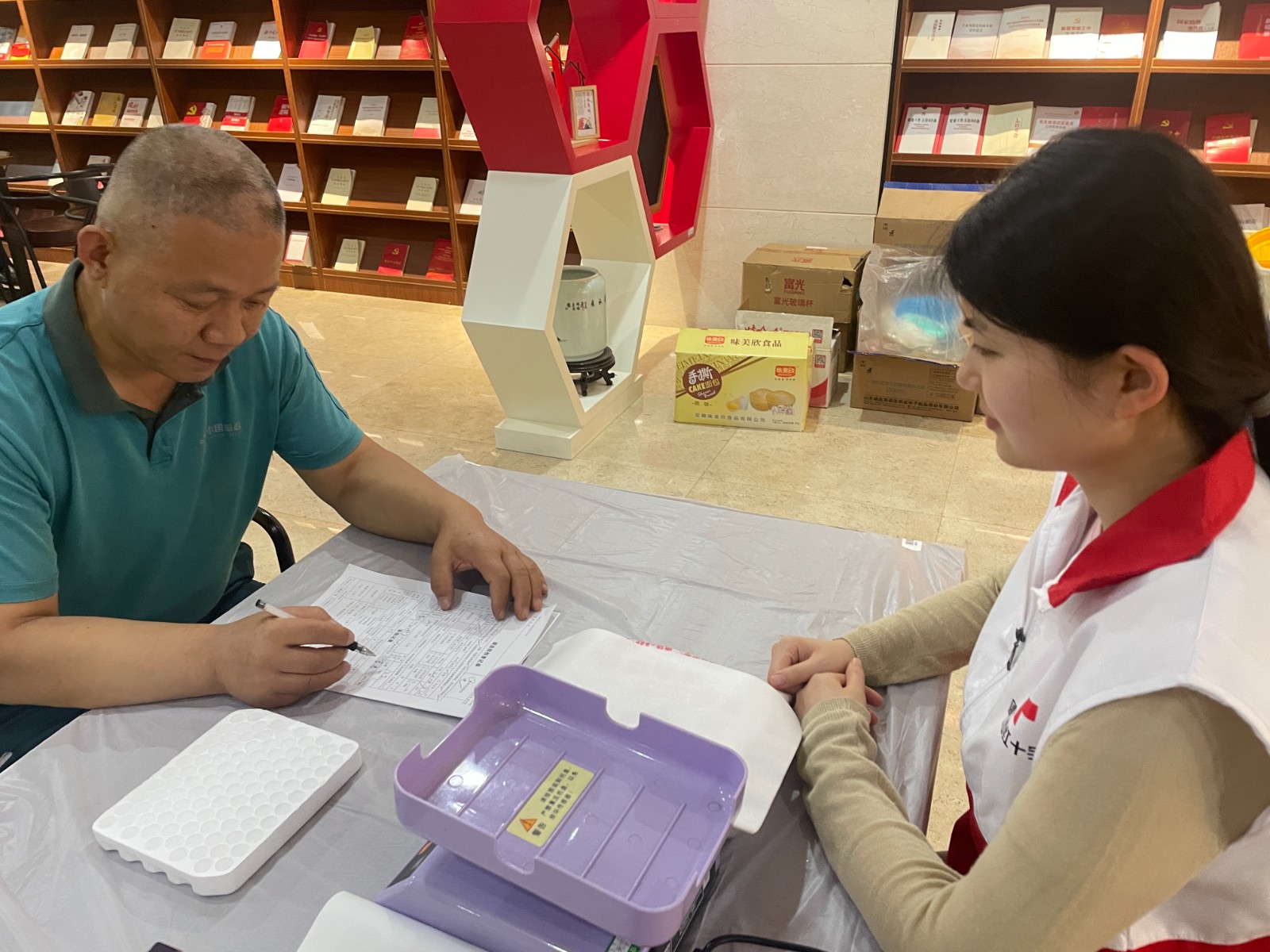 在“七一”建党节期间,靖江市红十字会联合市血站在行政中心一楼书吧开展“热血为民 献礼七一”无偿献血活动,积极发挥党员干部先锋模范作用,助力献血公益事业。