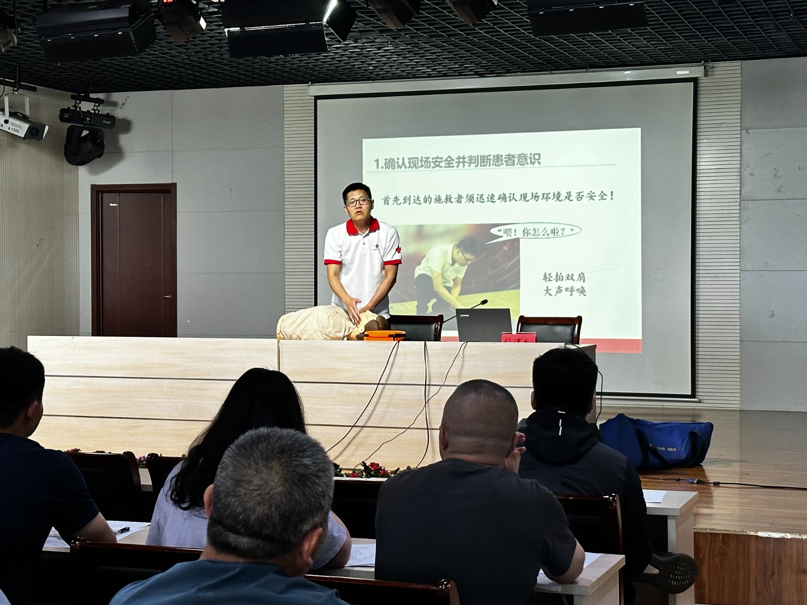 曹老师强调了“黄金四分钟”的重要性,引导安全负责员们从专业的角度增强急救技能,保护自己、帮助他人。随后,还从现场救护的原则和施救技巧等方面系统地讲解了应急救援的注意事项、心肺复苏的基本知识以及应急救护一体机(AED)的使用方法。此外,曹老师还讲解了气道异物发生的机制及海姆立克急救法,并邀请安全员现场操作、实践。
