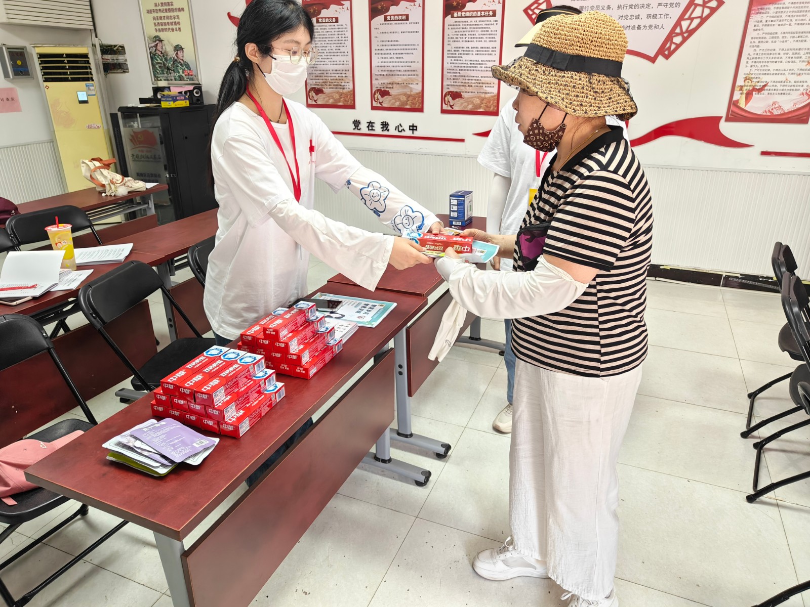 活动现场,志愿者们认真地为老年人测量血压、血糖,解答关于高血压防治等相关问题,针对高血压、高血糖的老年人,志愿者们嘱咐他们要注意饮食,保持良好的生活饮食习惯,并针对如何防止此类疾病发作进行了耐心细致的讲解。同时志愿者以问卷调查的形式了解老年人对于智能设备的困惑,积极地使用特别印刷的图册为老年人们讲解使用方法、健康养生及药物普及等知识,鼓励老年人们树立积极乐观的生活态度,养成健康的生活习惯。最后,志愿者们为社区居民送上肥皂、牙膏、蒸汽眼罩等日用品。一份份暖心礼品包含了对辖区居民老年人满满的关爱。前来参加活动的老年人络绎不绝。此次志愿活动,让老年人在家门口就享受到了健康便民服务,不但将健康送到老年人身边,更多的是将关爱送进家庭、送进老年人心里。