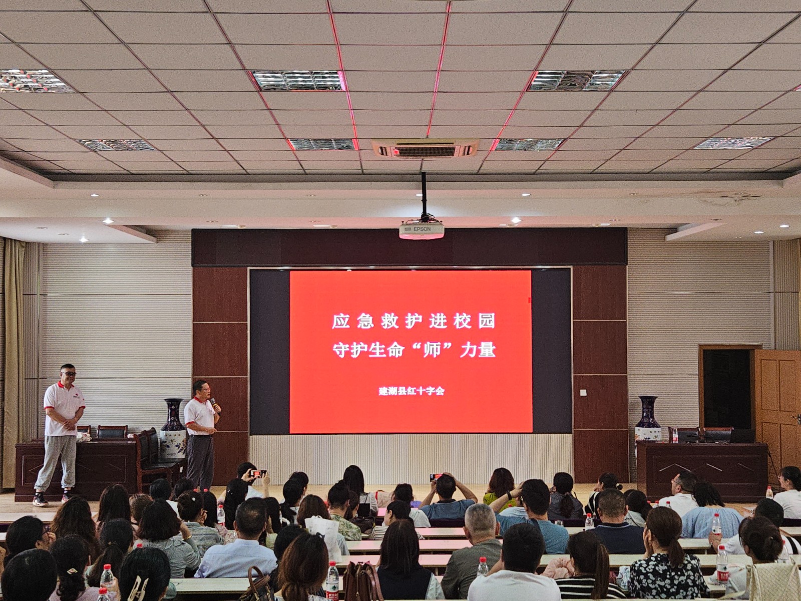 为进一步普及校园自动体外除颤器(AED)的使用方法,切实提高教职工应对突发情况处理能力,筑牢校园安全防线,7月1-2日,建湖县红十会组织红十字救援队师资走进县汇文实验初级中学,为652名老师开展应急救护知识培训。