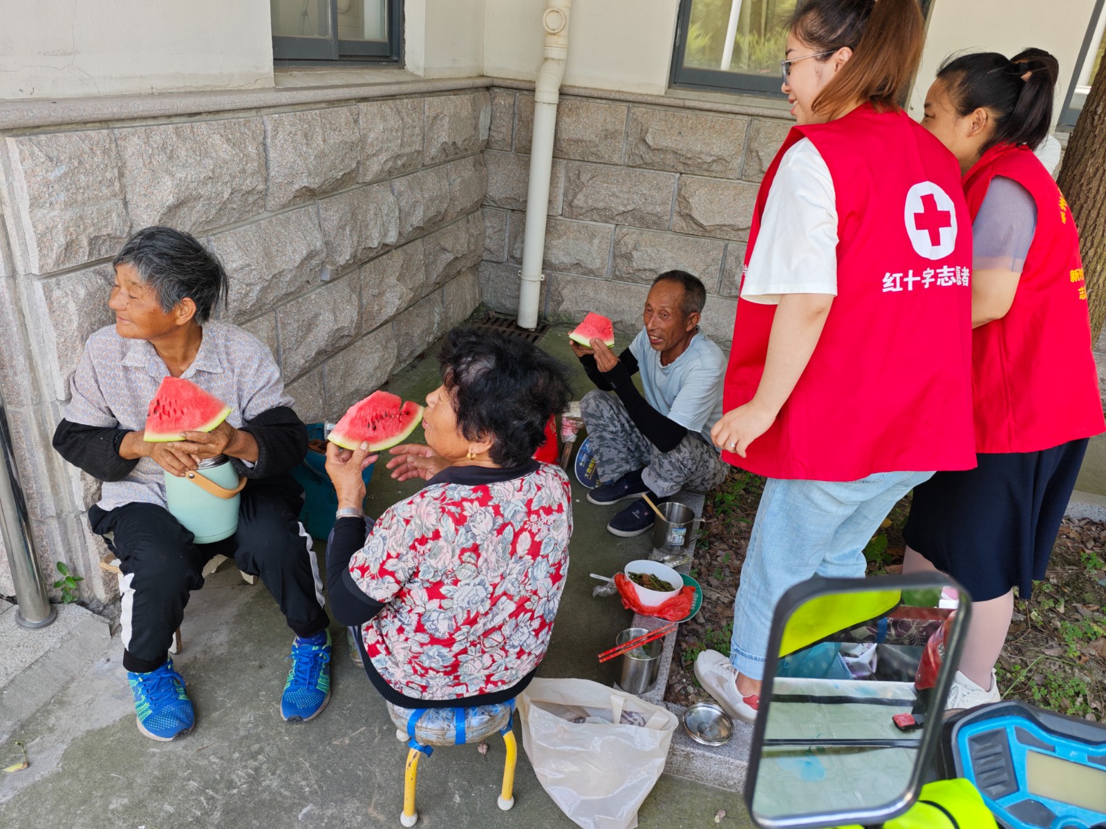 近日,刁铺街道关桥社区新时代文明实践站、红十字志愿者服务队开展“炎炎夏日送清凉、真心关爱环卫工”主题慰问活动,为坚守在一线的环卫工人送去了西瓜和凉白开,让他们在夏日酷暑中感受到一抹清凉。