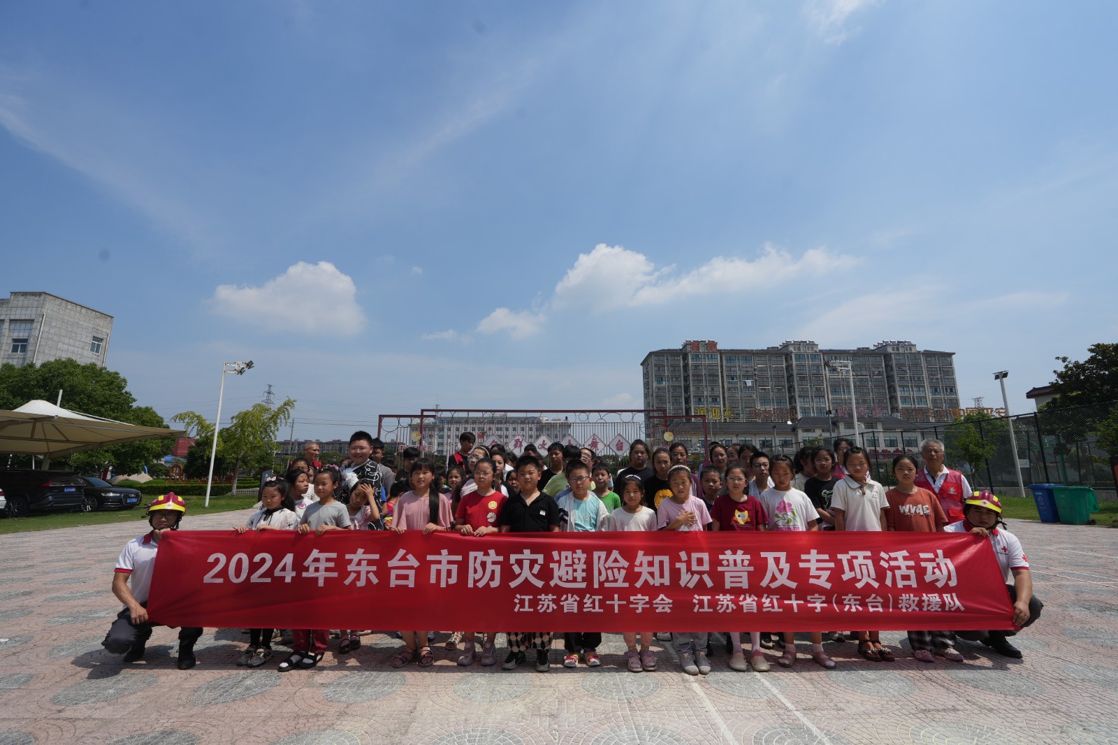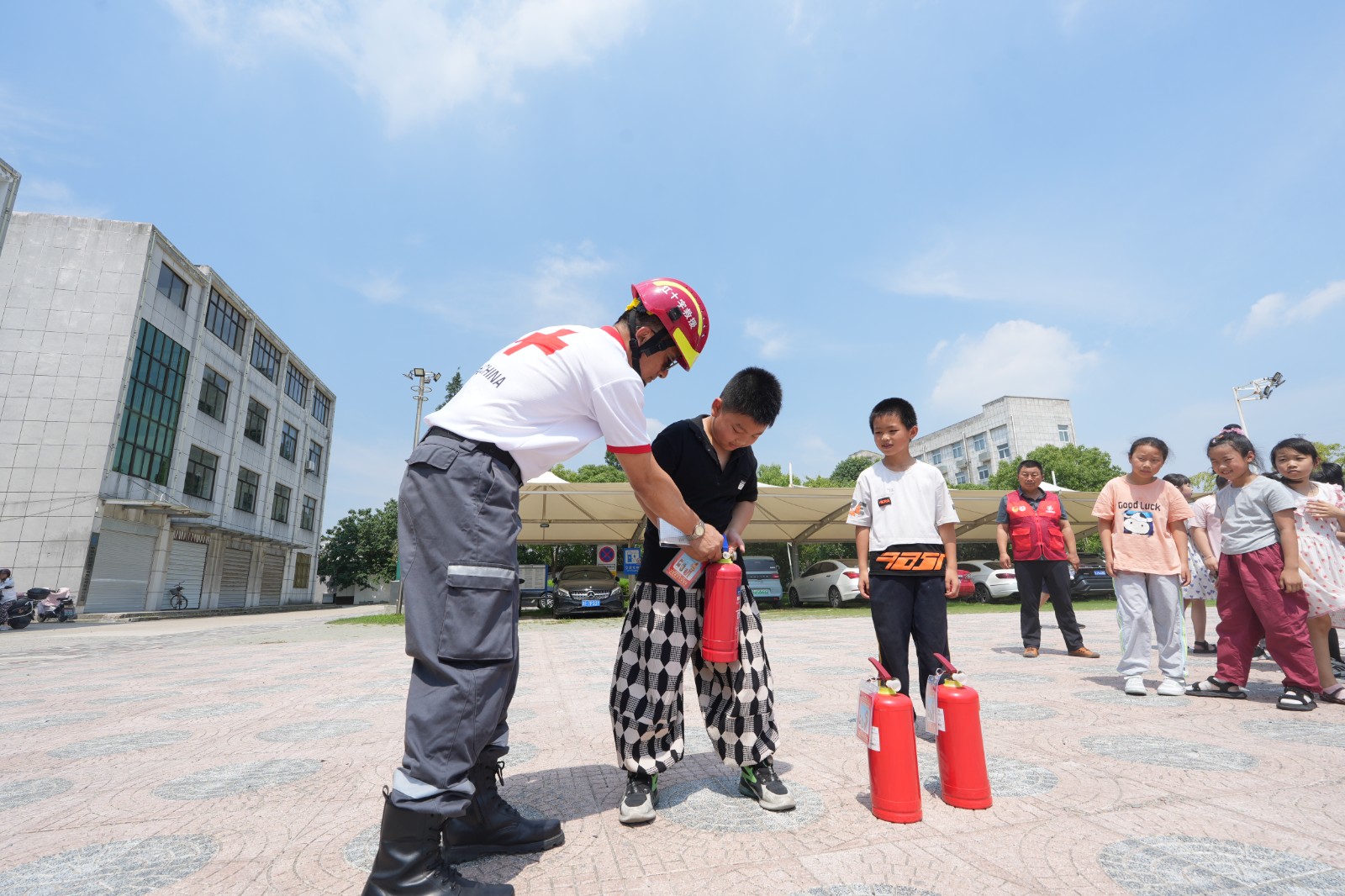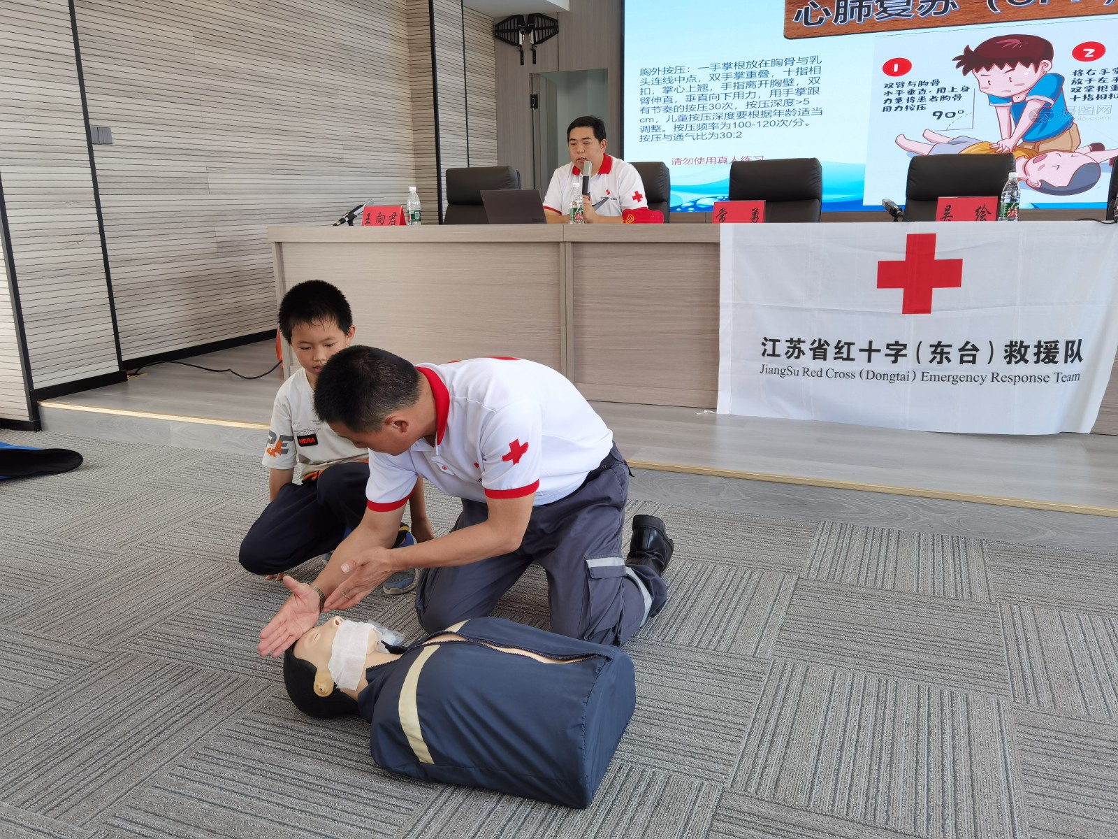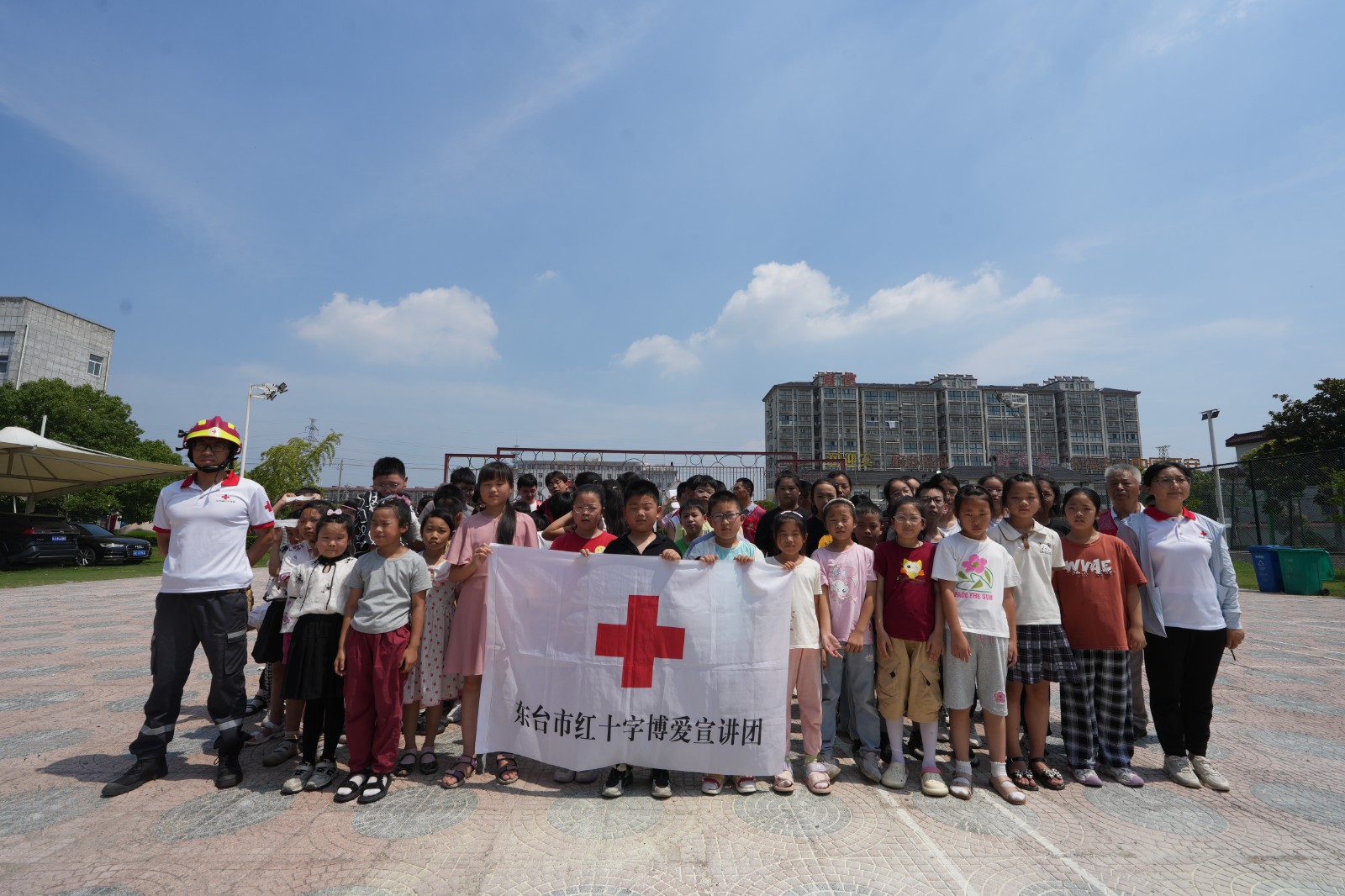 开班仪式后,江苏省红十字(东台)救援队组织爱心暑托班学生开展了防灾避险消防演练。救援队钱成宏讲解了防灾减灾避险知识等急救救护知识的演示。