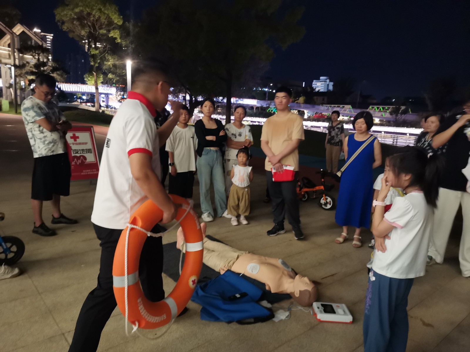 活动现场,红十字救护师资通过理论讲解和实操演练,耐心向民众普及心肺复苏、AED使用、防溺水的措施、溺水时的自救方法、发现有人溺水时的救护方法以及溺水后如何急救等方面进行了详实的讲解,并现场模拟演练心肺复苏等溺水救援技能等应急救护知识,普及活动接地气、实用,加上红十字应急救护师资诙谐幽默语言吸引了大批市民驻足。红十字应急救护——公益夜地摊项目自2020年暑期启动以来,今年已经5岁了。2020年6月随着地摊经济兴起,市红会因地制宜推出红十字应急救护“公益夜地摊”。一经推出,广受欢迎。20至23年“公益夜地摊” 共组织开展 175 场,受益群众6000余名。今年预计分别在城东悦来城、吾悦广场、七里漾等地开展公益夜地摊67场。推动红十字应急救护知识真正走进千家万户。
