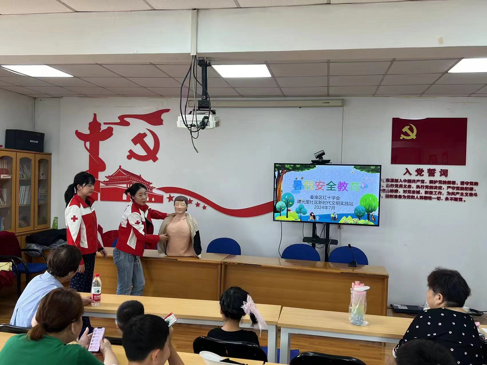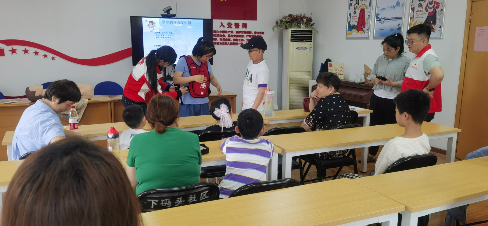 7月9日,在曙光里社区博爱家园,红十字志愿者为辖区孩子开展以“急救小达人 学习为救护”为主题的应急救护知识普及活动、暑期防溺水知识讲座,现场通过老师讲授防溺水小技能和提问互动,助力孩子掌握知识。