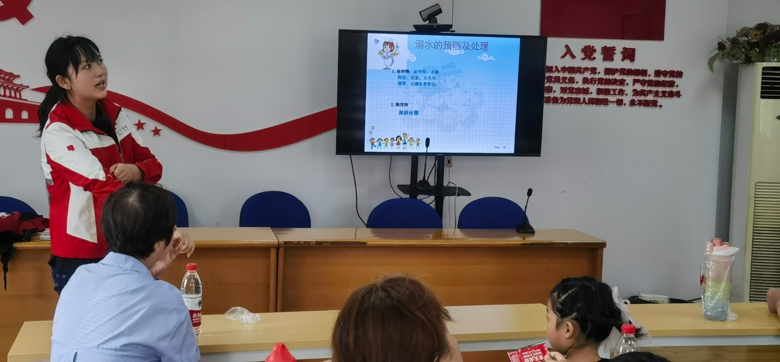 活动中,志愿者向孩子们介绍野外水域存在的危险因素、在野外环境中可能遇到的危急情况以及防溺水基本知识,提醒孩子们时刻牢记“六不一会”,通过ppt演示对孩子们进行防溺水、防火灾、防诈骗等知识宣传教育,引导孩子们安全度过暑期生活。