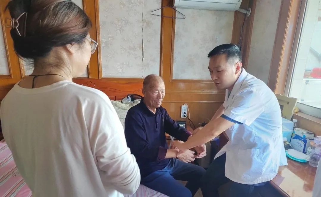 医务社工们利用休息天,来到华城社区的杨爷爷家里,为他进行健康教育,教会他和家人正确使用呼吸机的方法,以及日常生活中需要注意的事项,并送上健康小药箱。