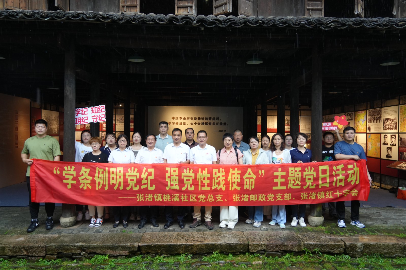 七一建党节来临,张渚镇红十字会联合桃溪社区党总支、宜兴市邮政局张渚支局党支部在桃溪社区党群服务中心三楼会议室开展了“学条例明党纪 强党性践使命”为主题的党纪学习教育活动。