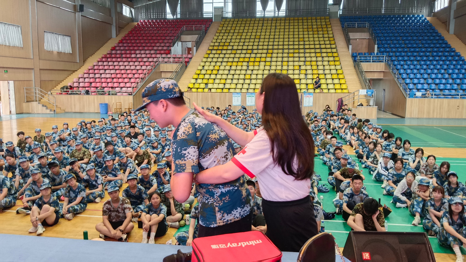 暑期来临,市实验高级中学新生军训开始。11日,市红十字会救护培训老师来到军训现场,为718名新生开展应急救护普及培训。