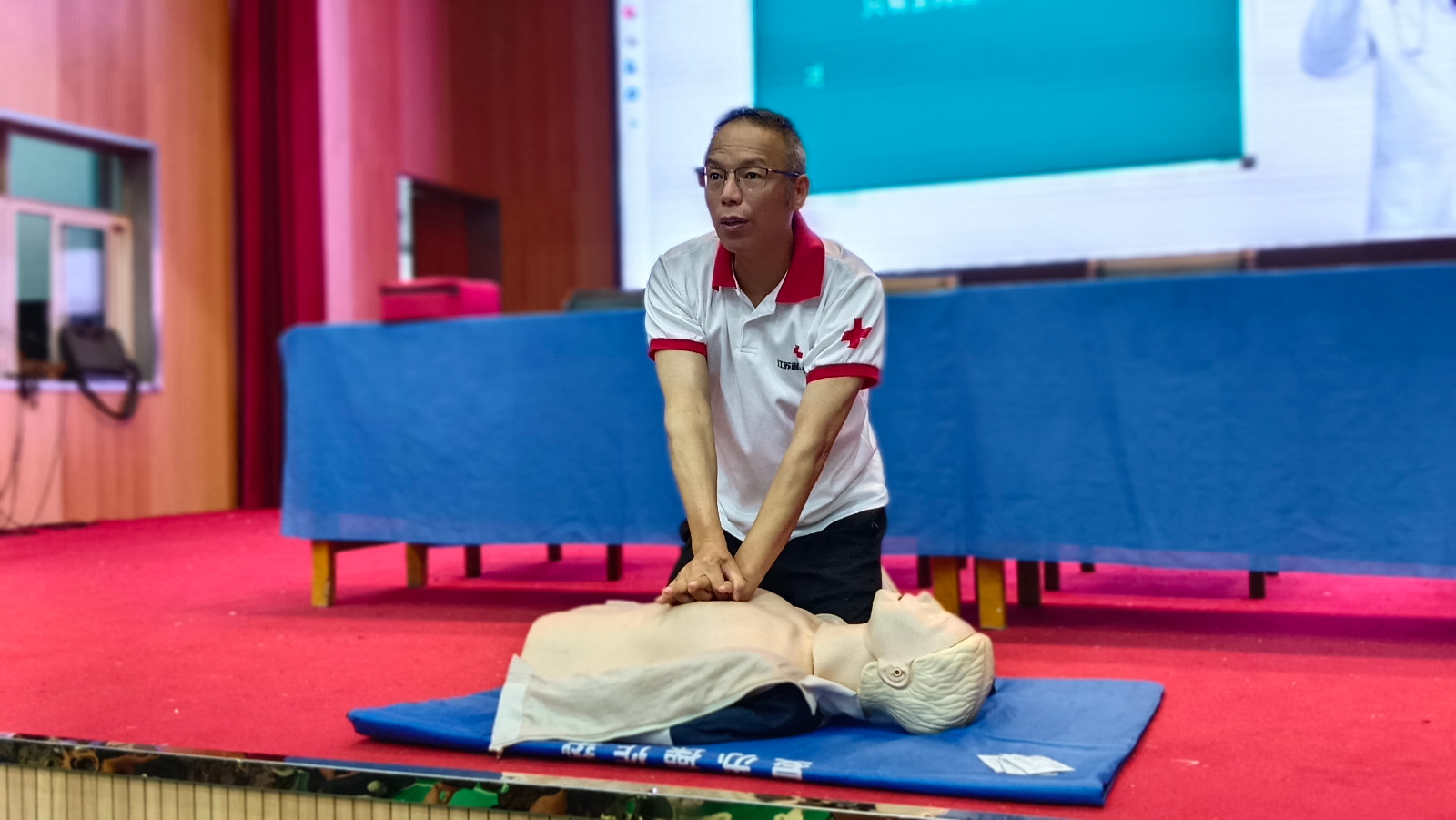 为让学生们在做好预防这些意外伤害的同时,掌握到相应的急救方法,能够在危险来临时拥有自救和互救的能力,培训老师重点讲授了心肺复苏术、海姆立克急救法等应急救护技能。